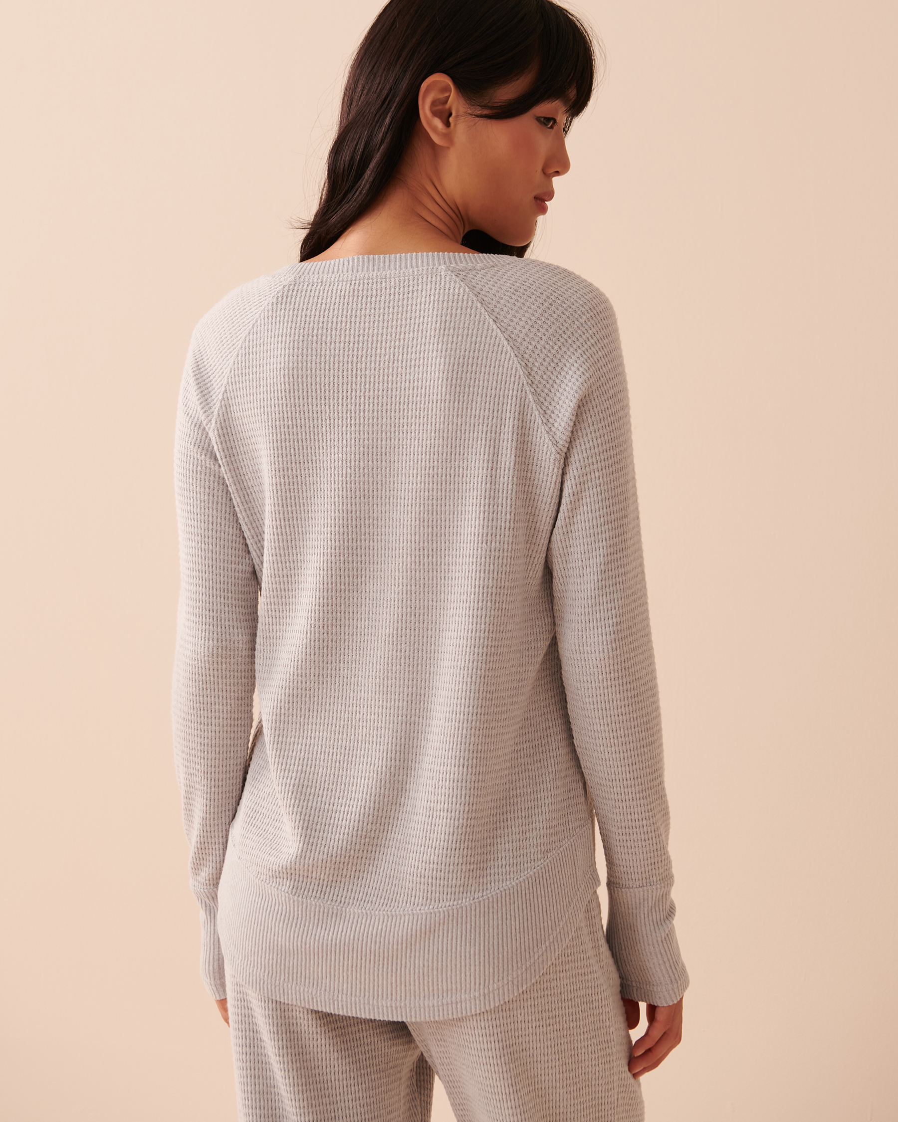 Notre chandail à manches longues en tissu gaufré est si confortable qu'il est parfait pour être porté toute la journée! Avec son design polyvalent et ses manches longues classiques, ce chandail convient parfaitement à des sorties improvisées ou des soirées décontractées. Portez-le avec le pantalon assorti pour un look texturé complet.