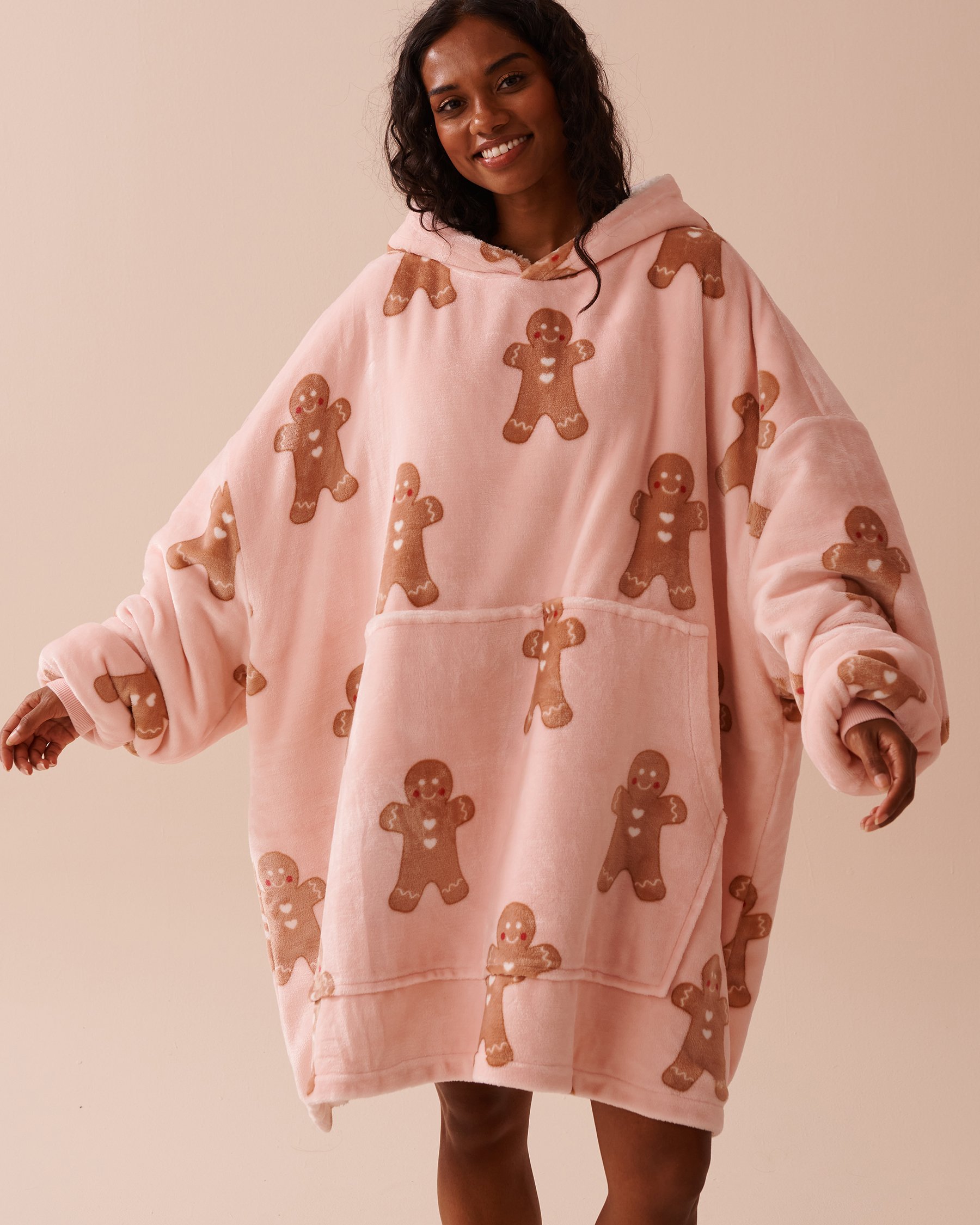 Un confort absolu! Ce chandail surdimensionné est si doux que vous aurez l'impression de porter une couverture. Et son motif de pain d'épices? Absolument adorable!