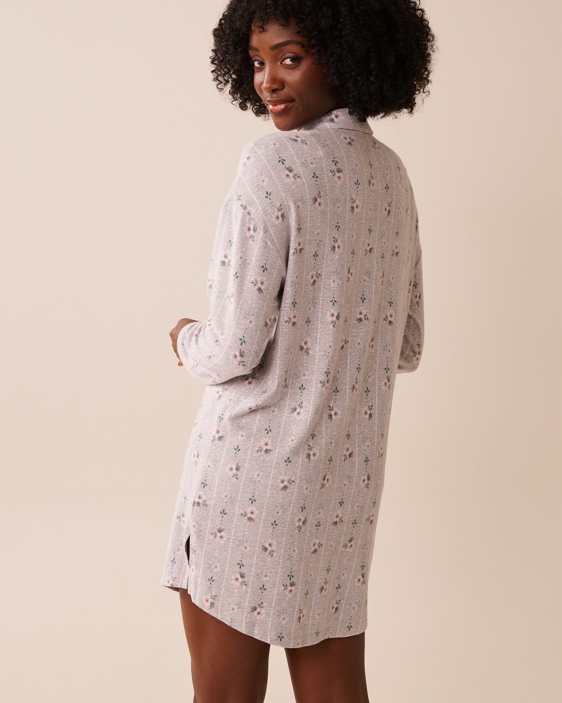 Chemise de nuit boutonnée en fibres recyclées imprimé floral
