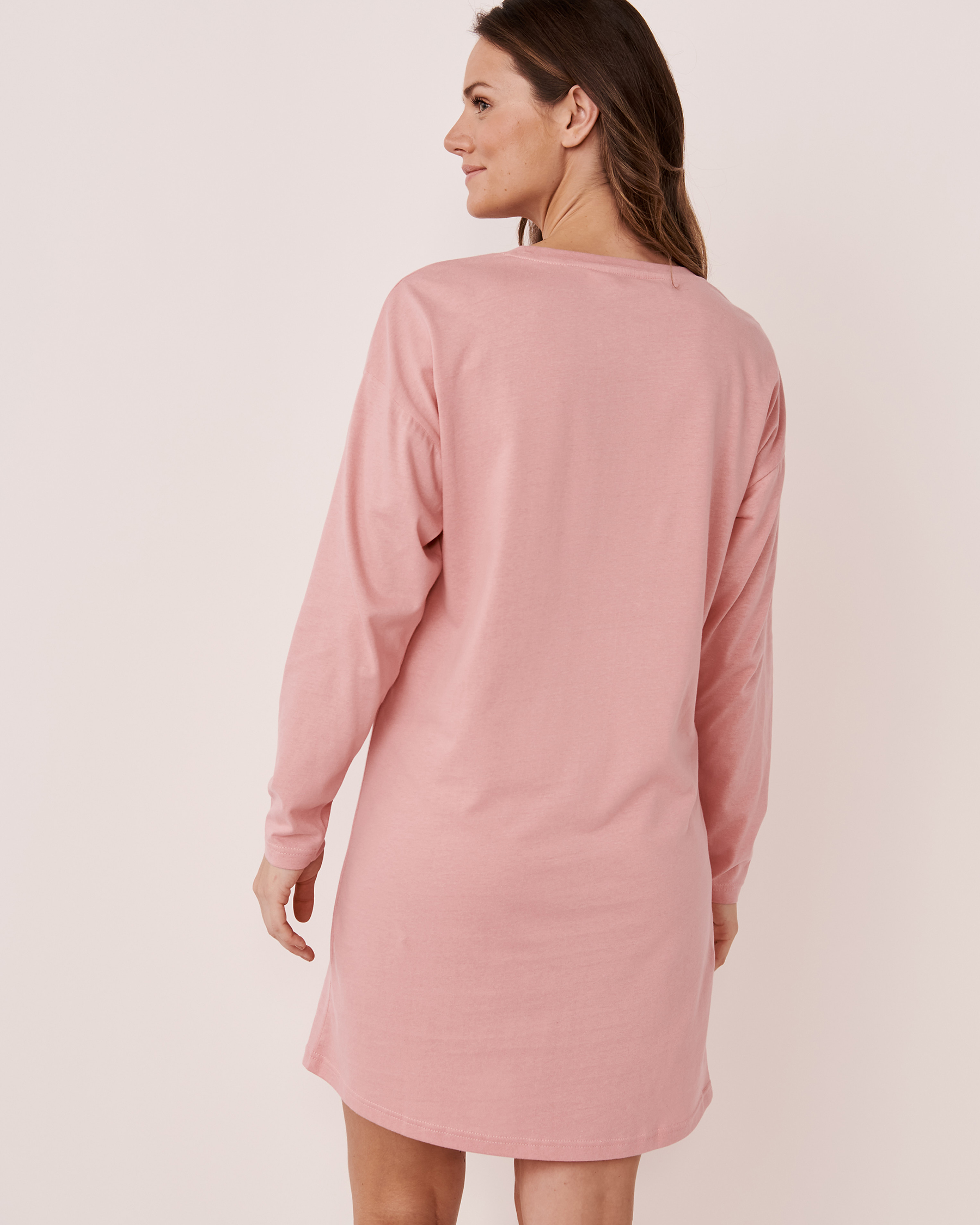 Chemise de nuit à manches longues en coton avec col rond et imprimé à l'avant.