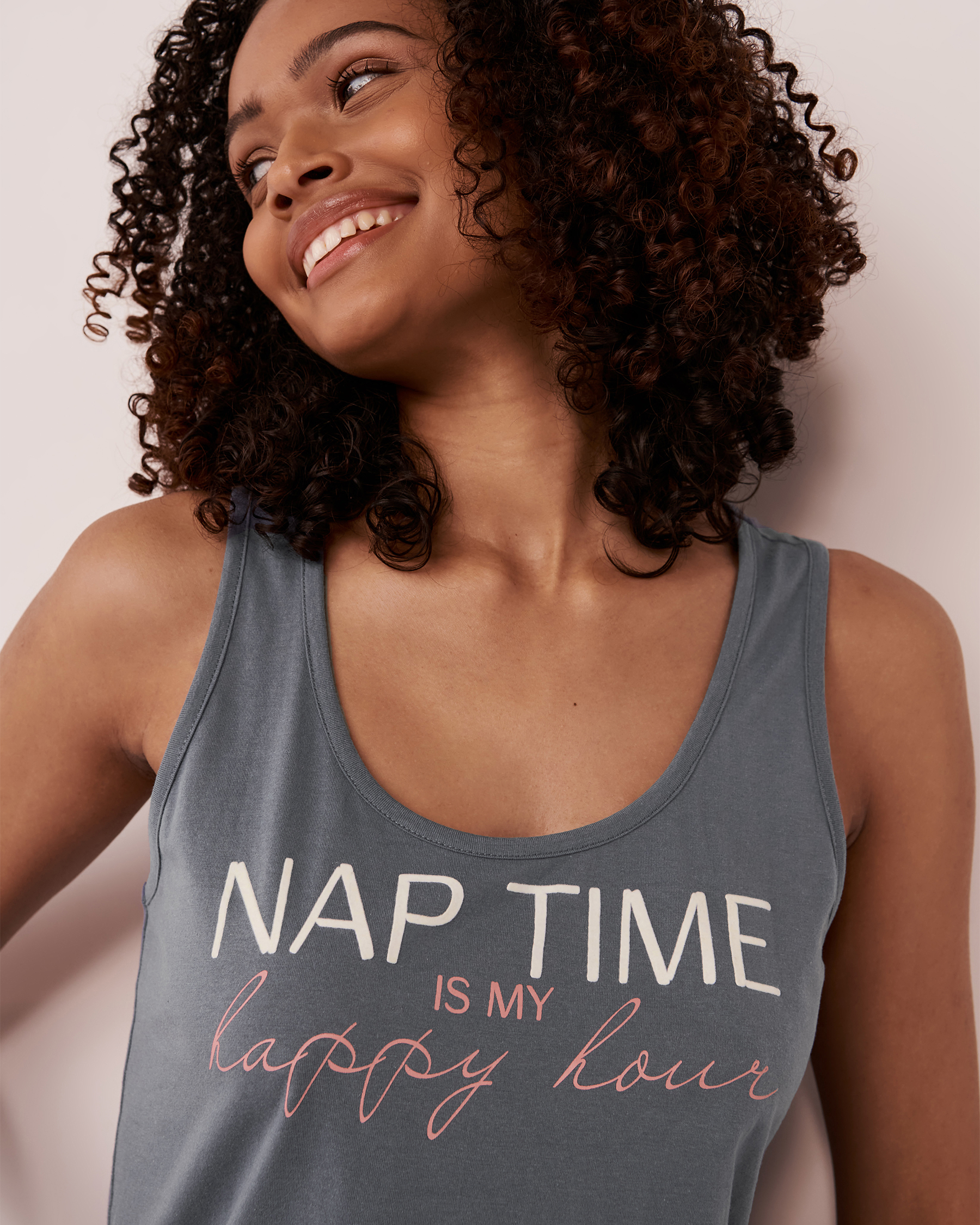 Chemise de nuit sans manches en coton à dos nageur et coupe droite.