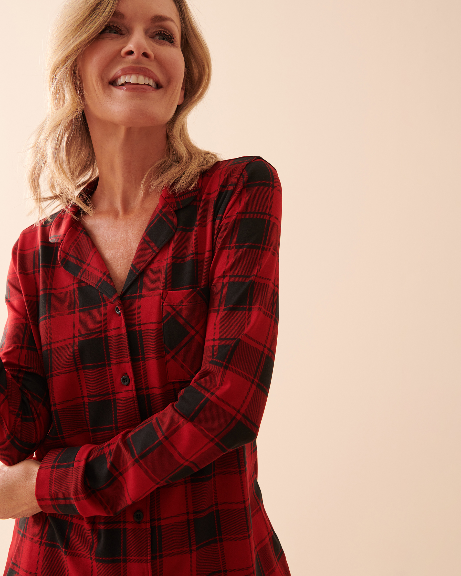Il est si doux que vous ne voudrez plus le quitter! Avec son confort inégalé, ses fibres durables et son motif à carreaux buffalo vintage, ce chemisier est parfait pour les nuits paisibles et les journées détente.