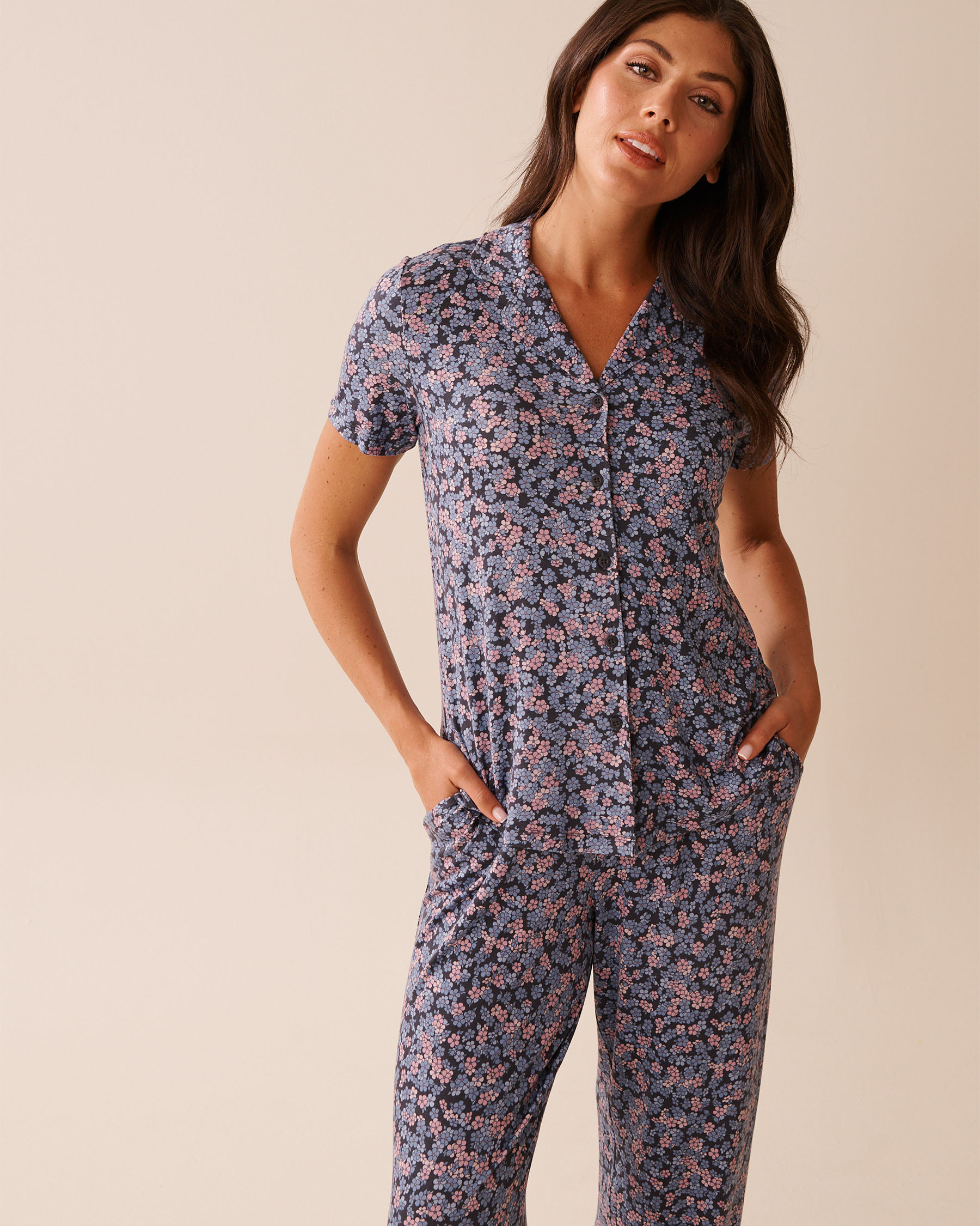 Chemisier manches courtes en jersey doux imprimé à fleurs