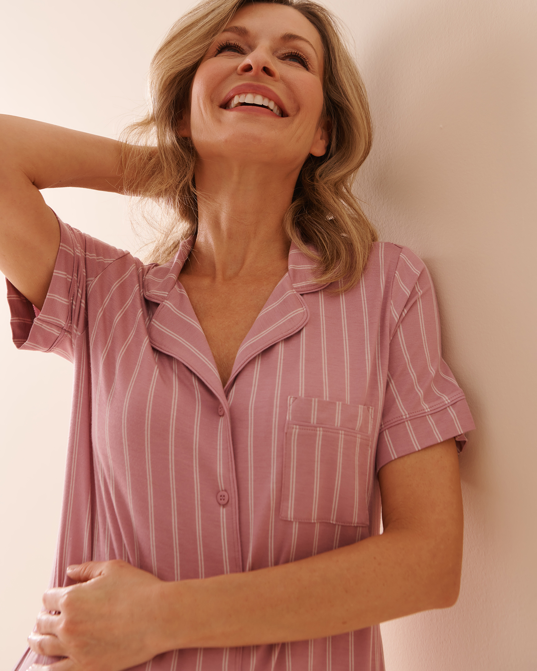 Une chose est sûre : vous ne voudrez plus quitter ce chemisier en jersey doux. Portez-le avec nos bas de pyjama assortis!