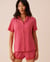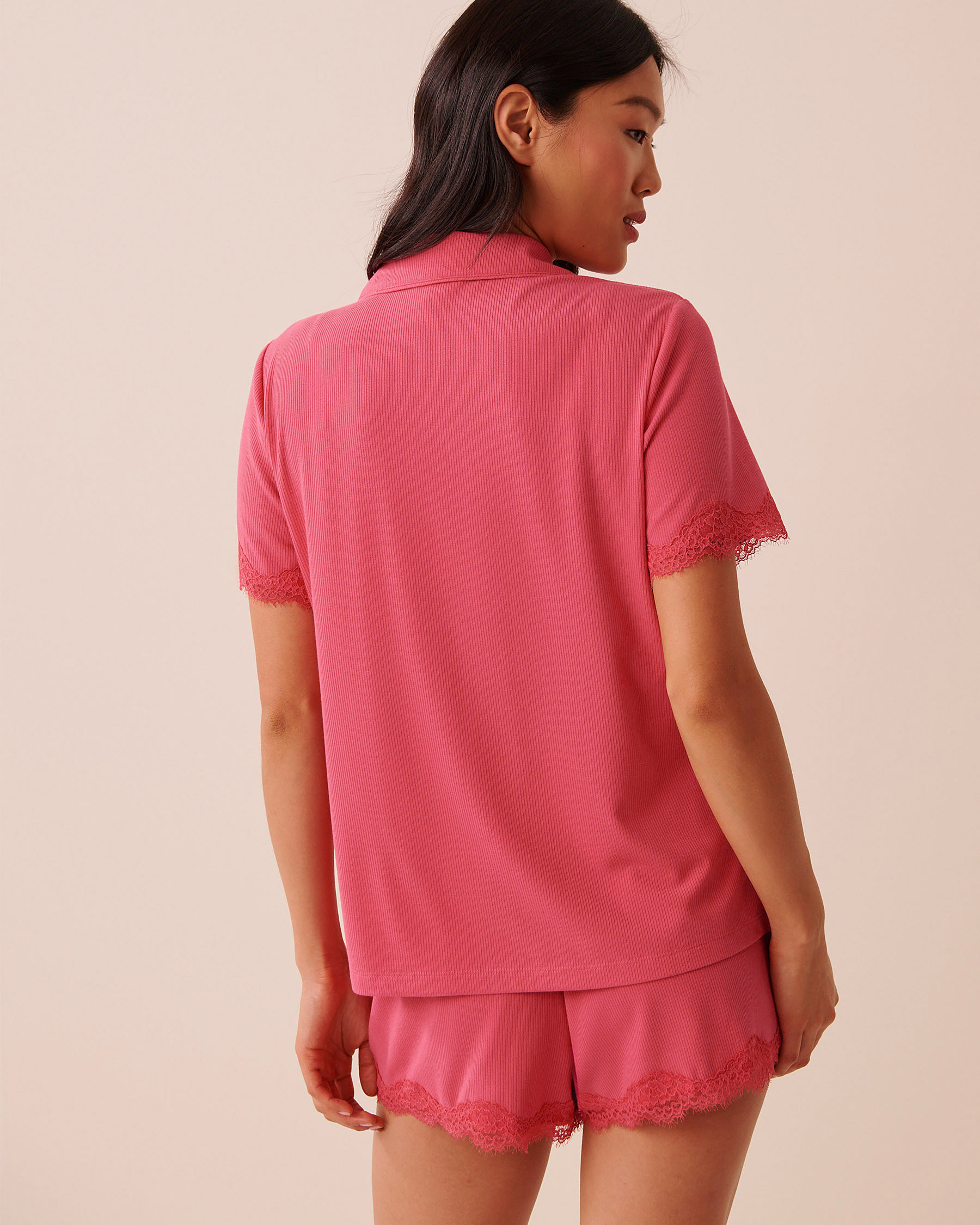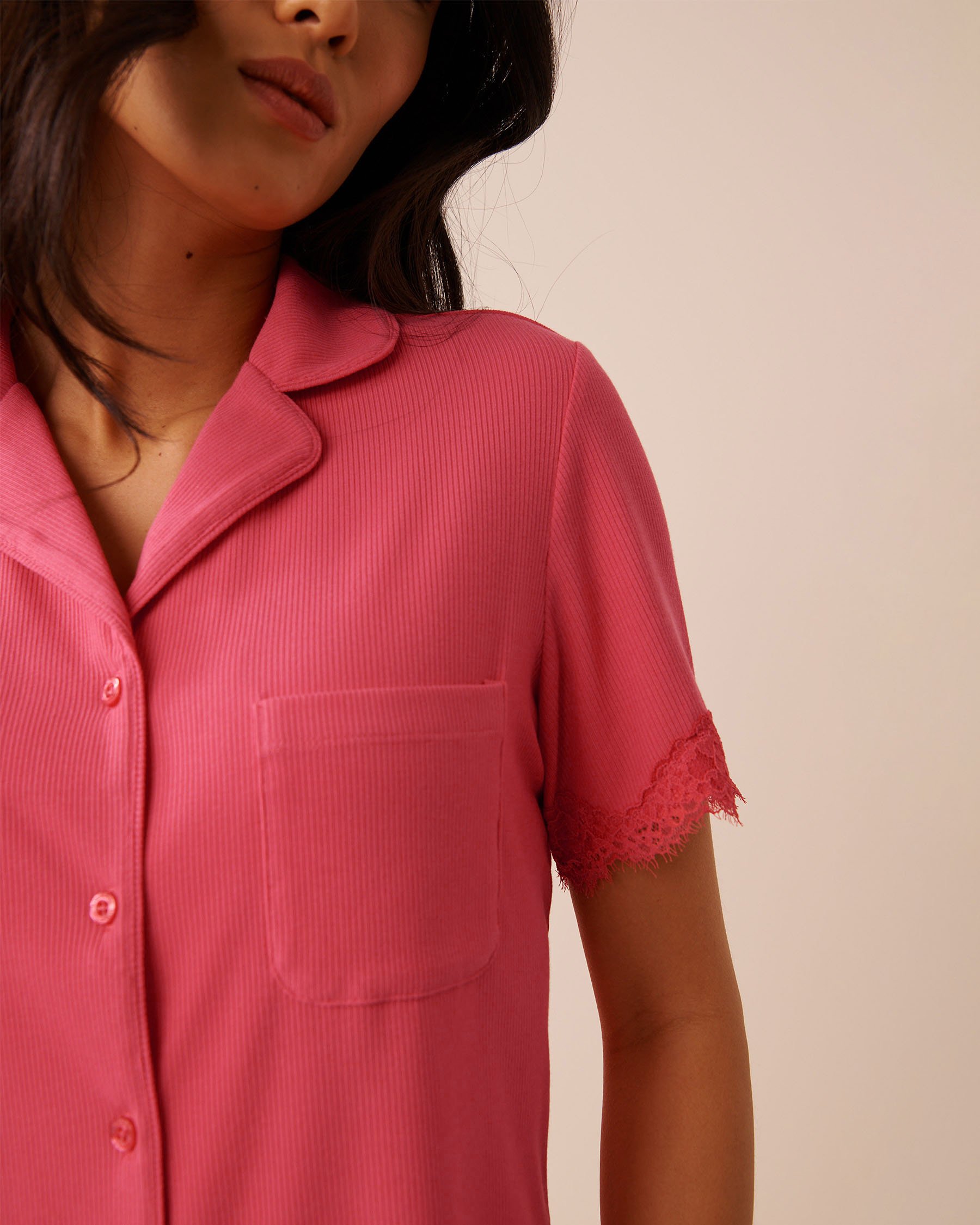 Chemisier manches courtes en modal côtelé et bordures de dentelle