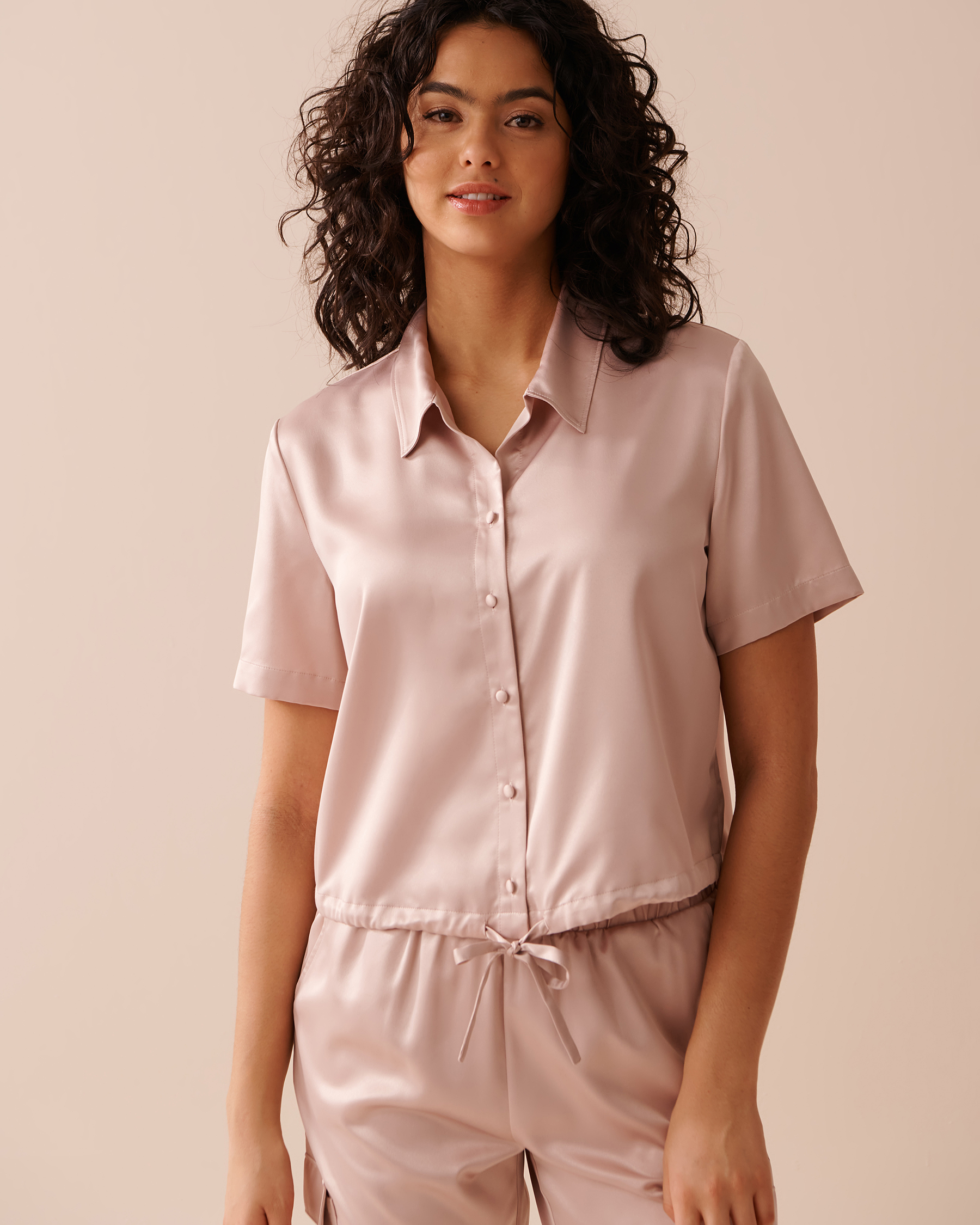 Avec son look et son toucher luxueux ainsi que sa coupe décontractée, notre chemisier manches courtes en satin est là pour vous offrir le moment de détente que vous méritez!