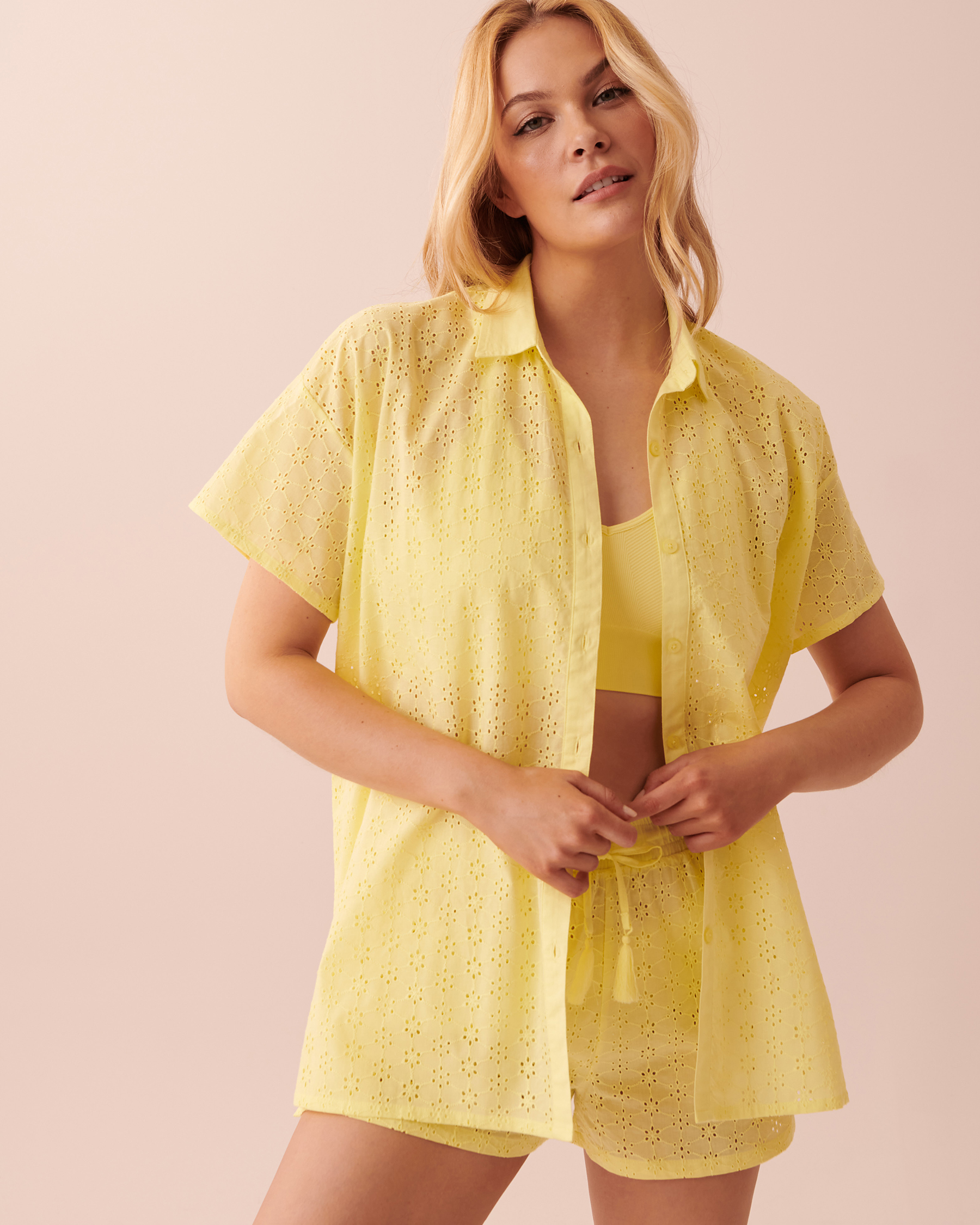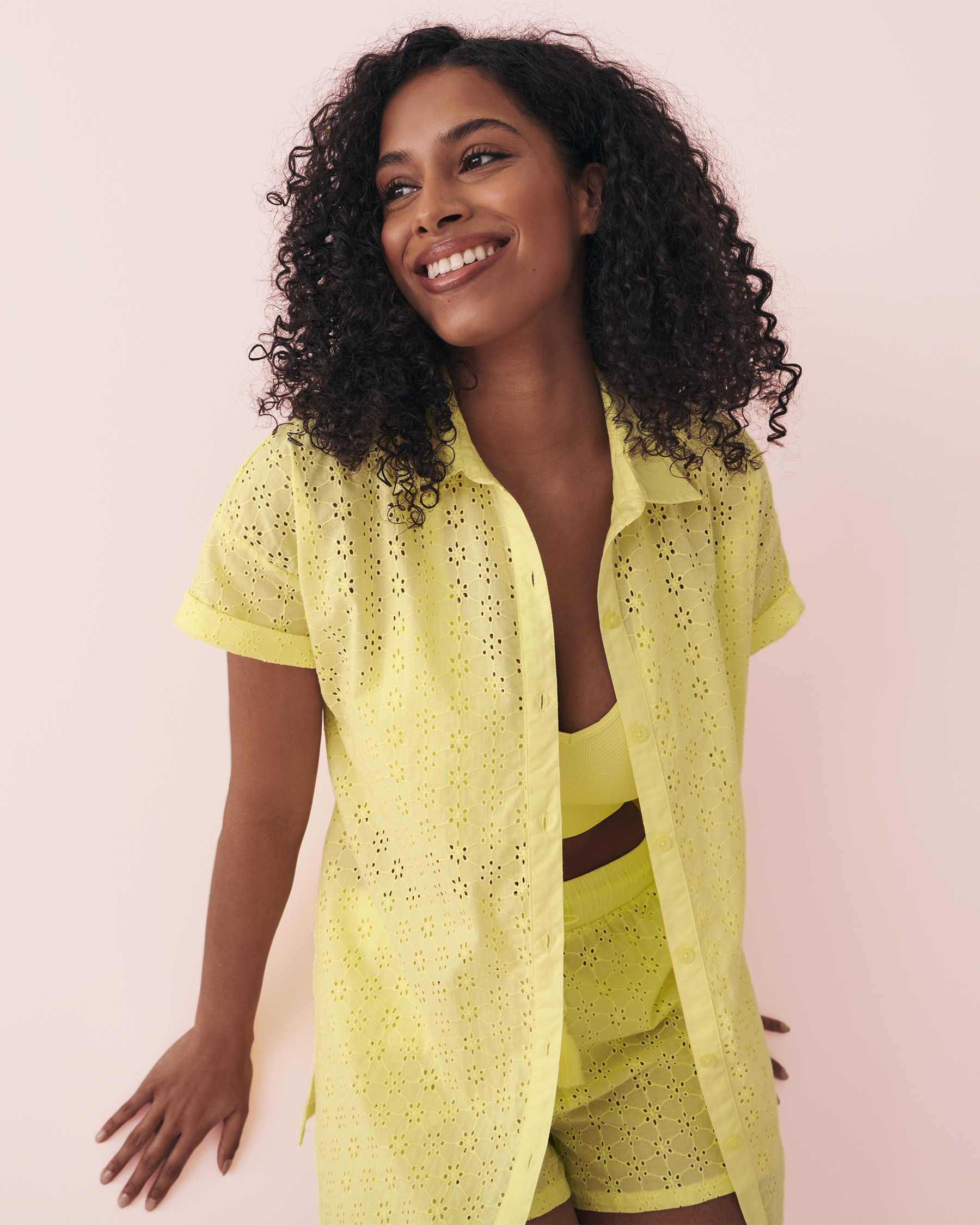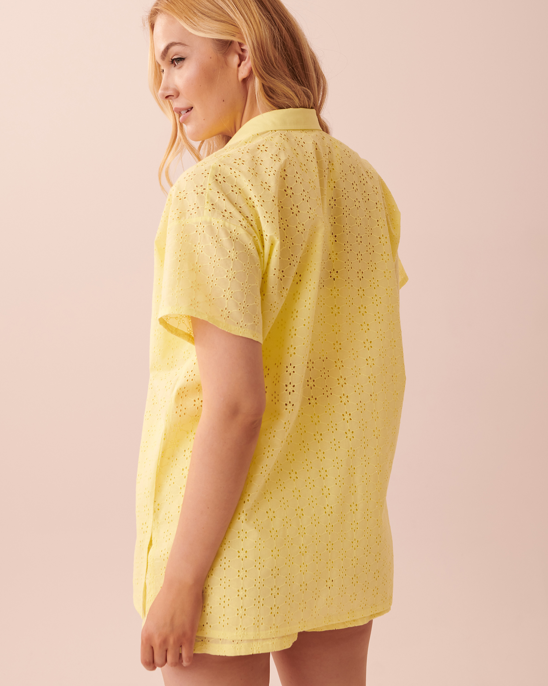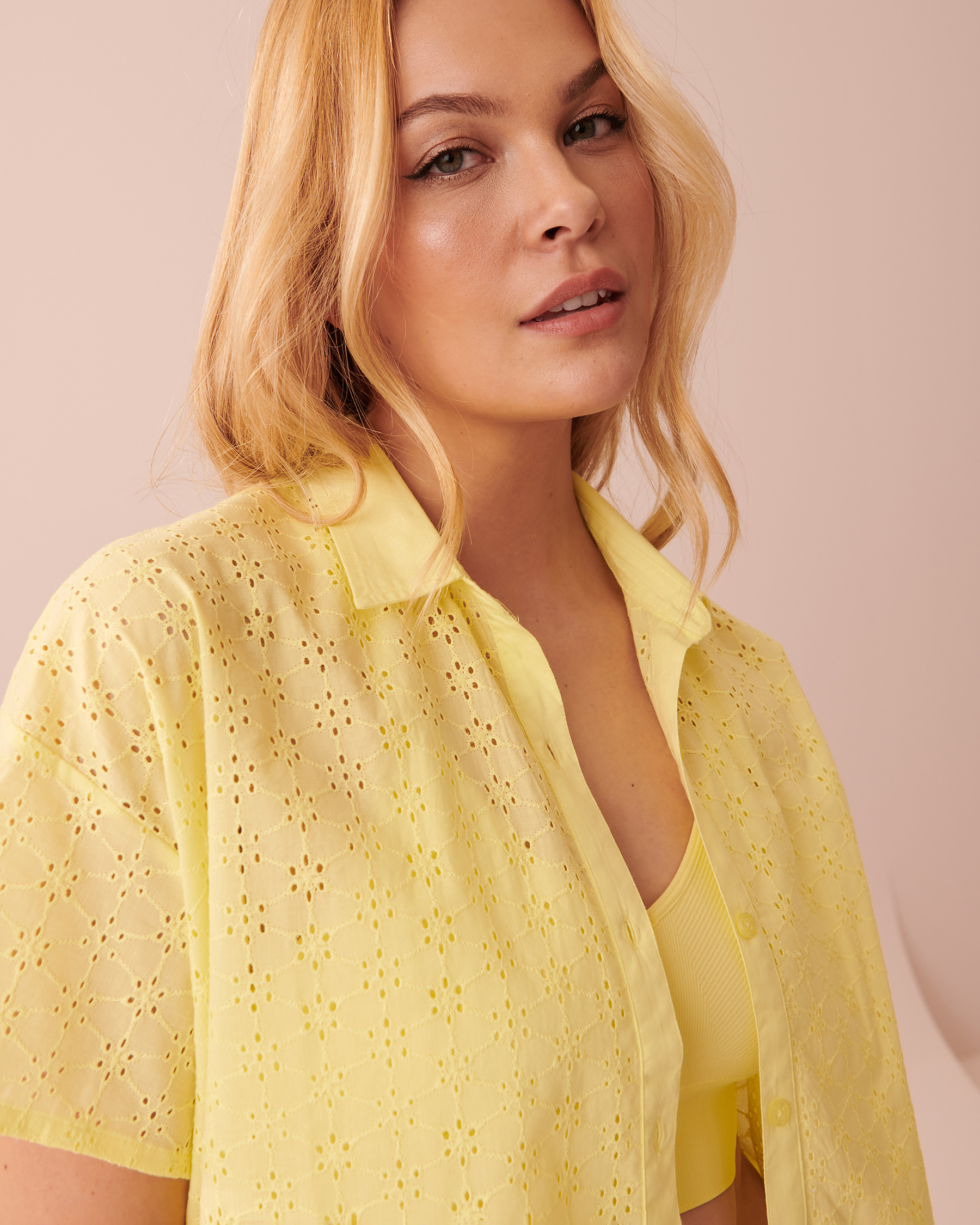 Ajoutez une touche de style à votre collection de pyjamas avec cette chemise à œillets en coton! Raffinée et confortable, c'est la pièce idéale pour se détendre et passer une bonne nuit de sommeil.