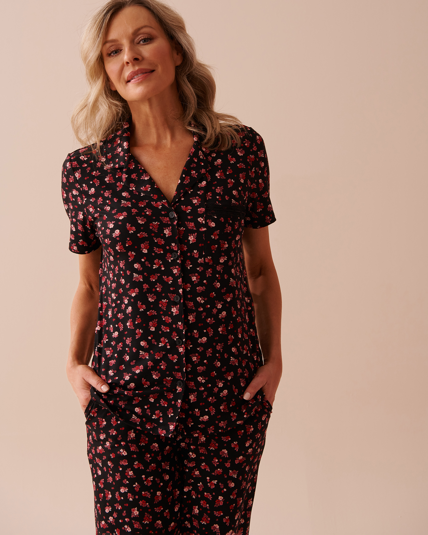 Chemisier manches courtes ultra doux à roses