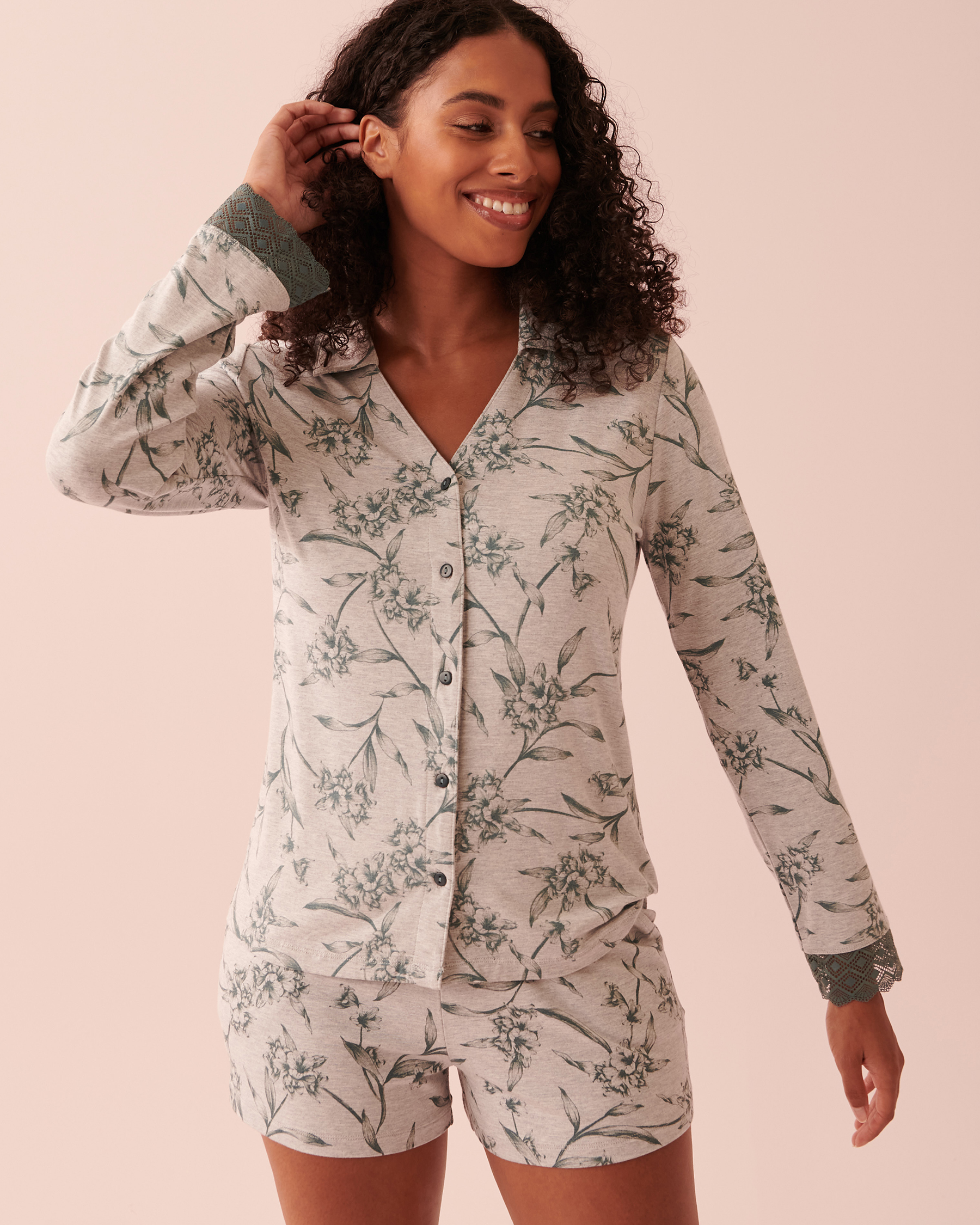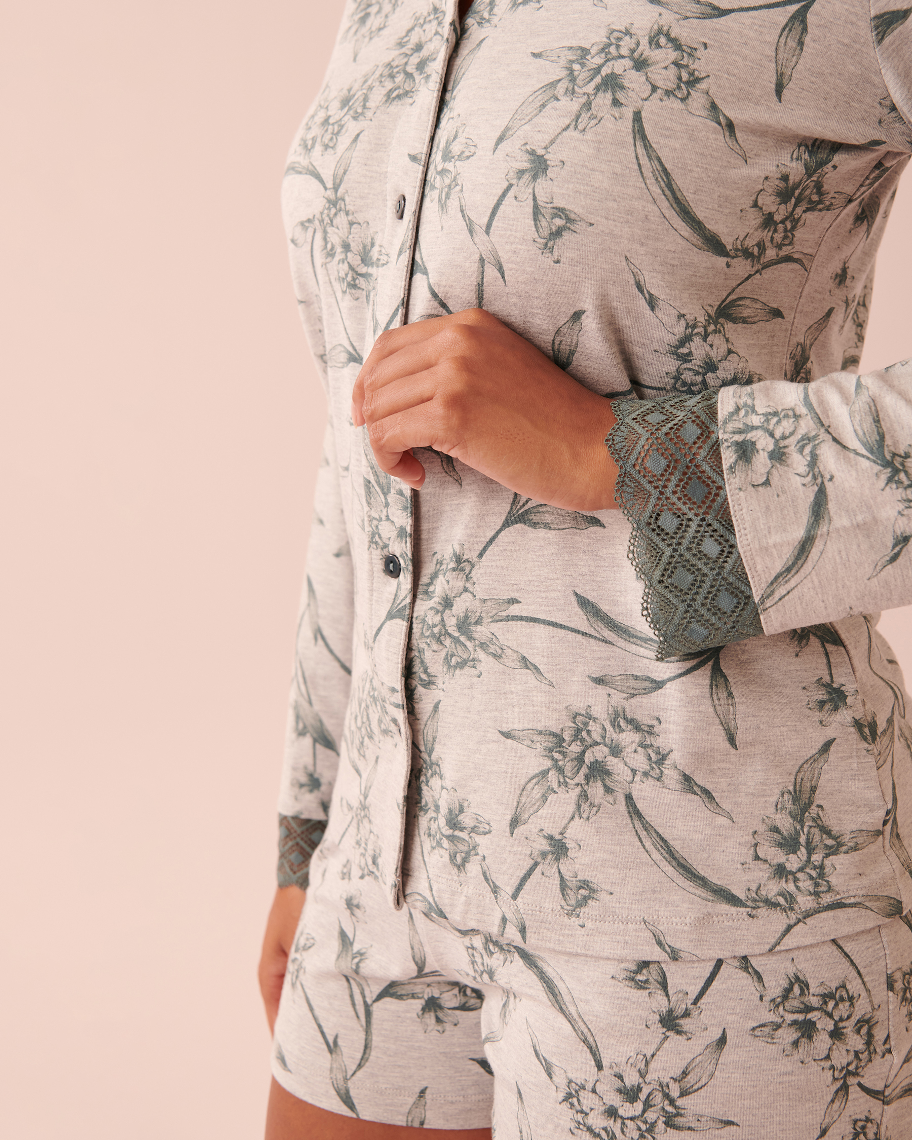 Chemisier manches longues en bambou détails en dentelle