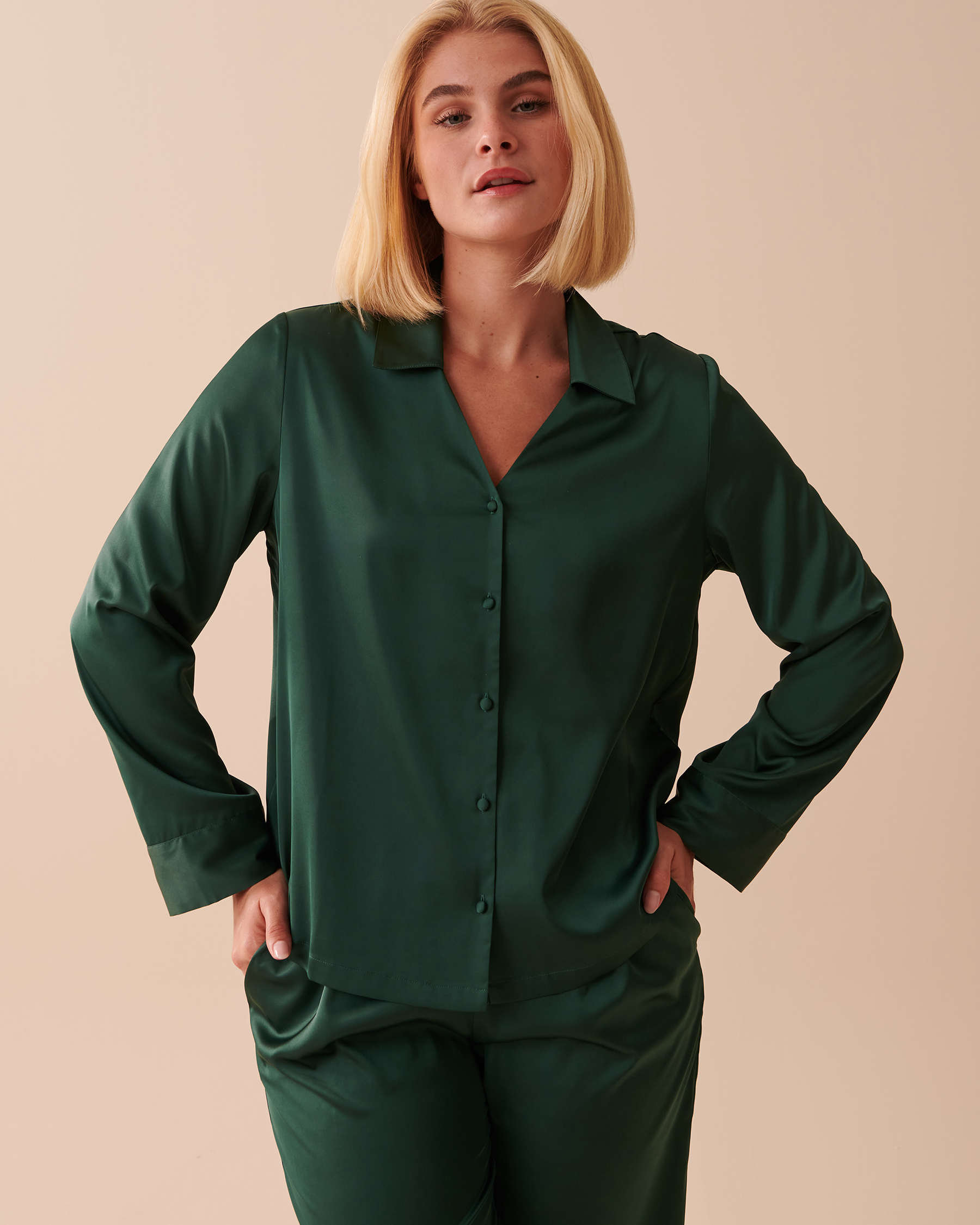 Détendez-vous comme jamais auparavant avec nos élégants chemisiers en satin! Plongez dans la douce étreinte d'un tissu soyeux contre votre peau. Choisissez entre un rouge audacieux et un vert profond, et offrez-vous une alliance parfaite de style et confort.