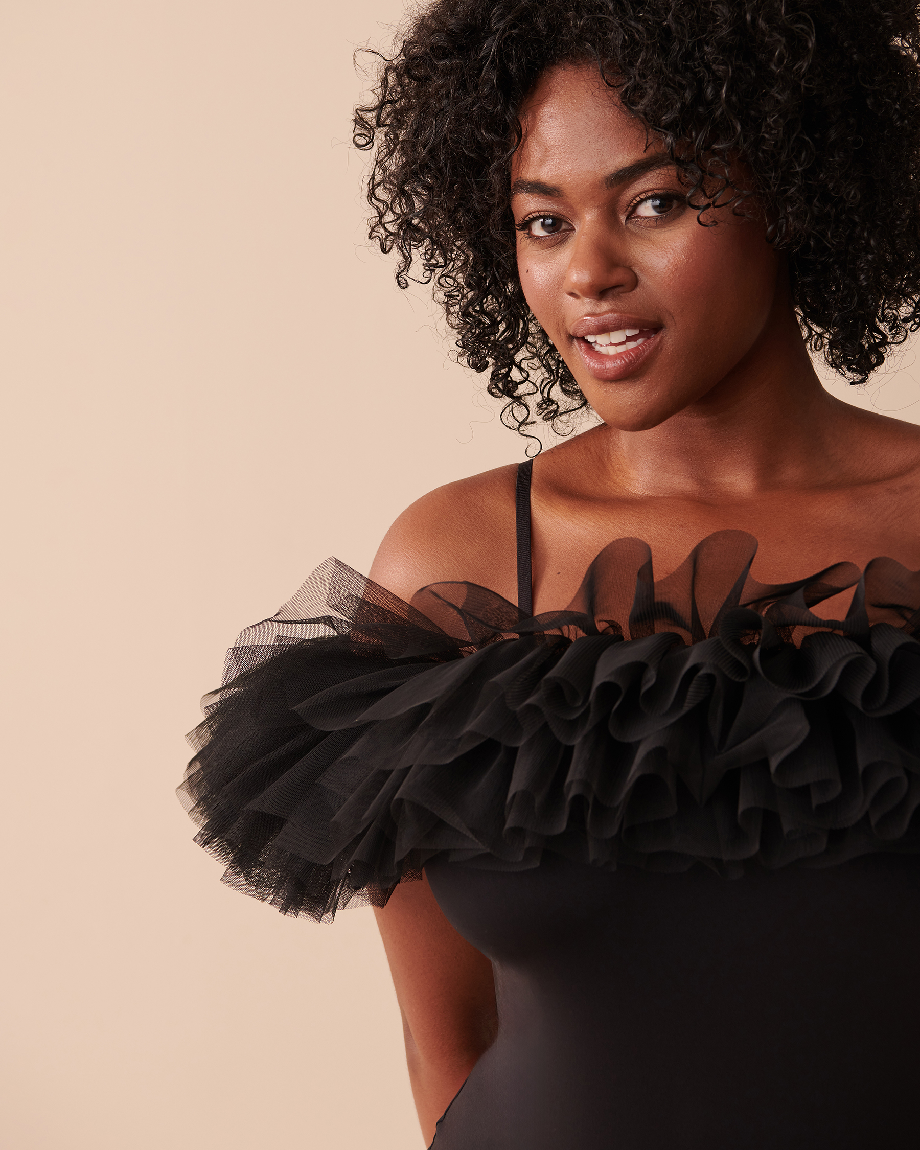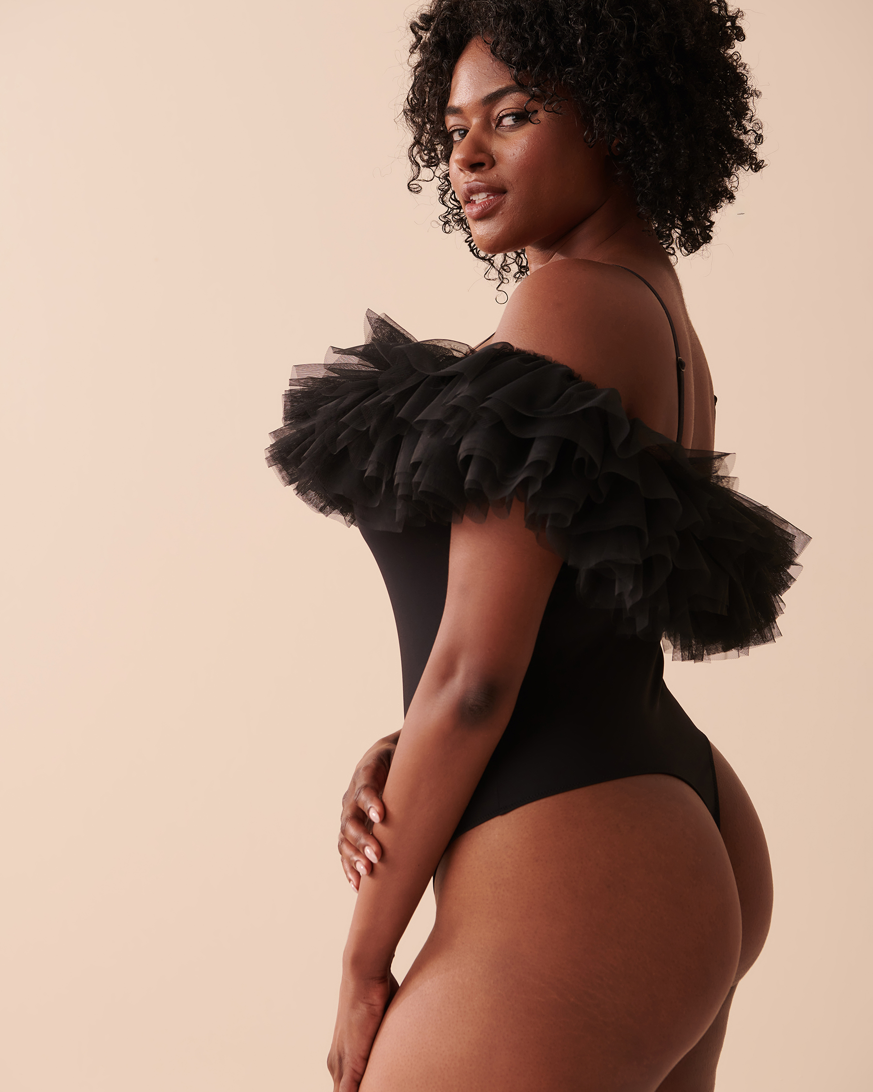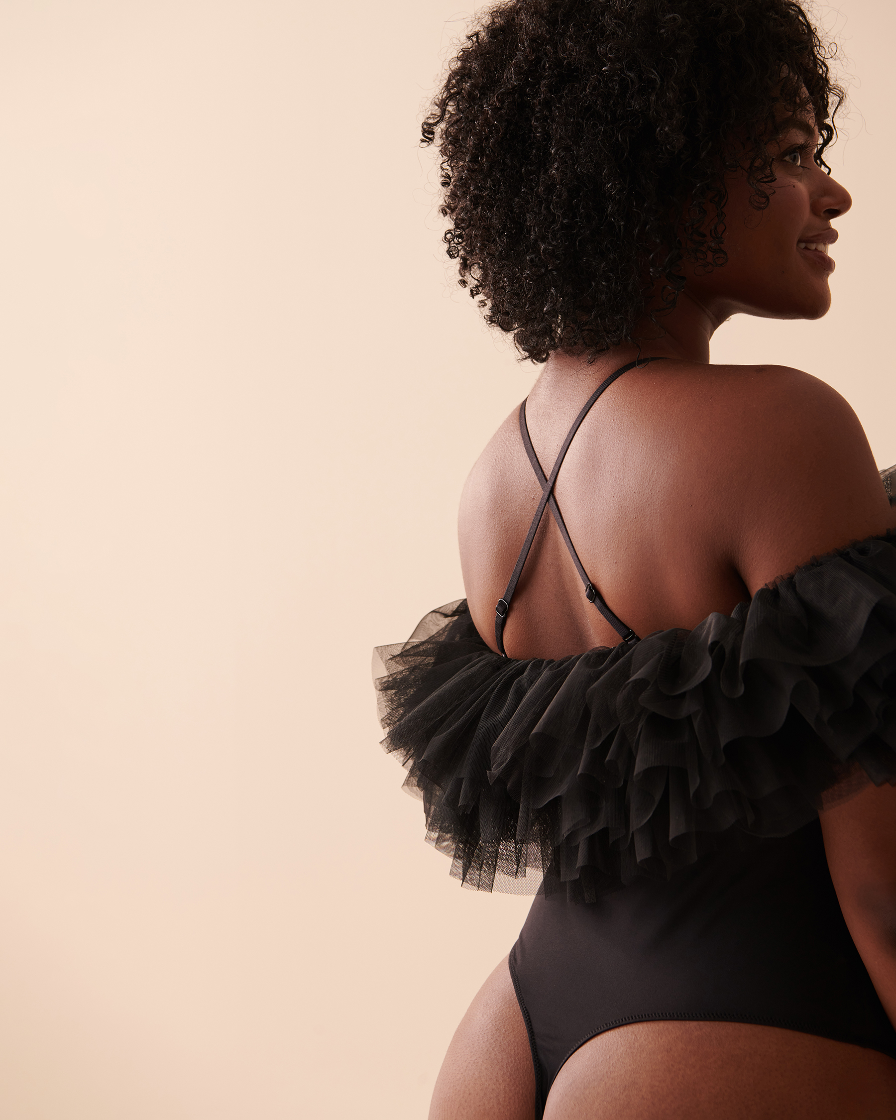 Une pièce de lingerie qui mérite d'être montrée! Avec son élégante coupe à épaules dénudées, ses détails volants et son confort flatteur, ce combiné est parfait pour une soirée romantique ou une sortie entre filles.