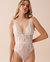 Ce séduisant combiné en dentelle et résille dévoile un décolleté plongeant et un dos ouvert mettant en valeur les courbes de manière élégamment osée.