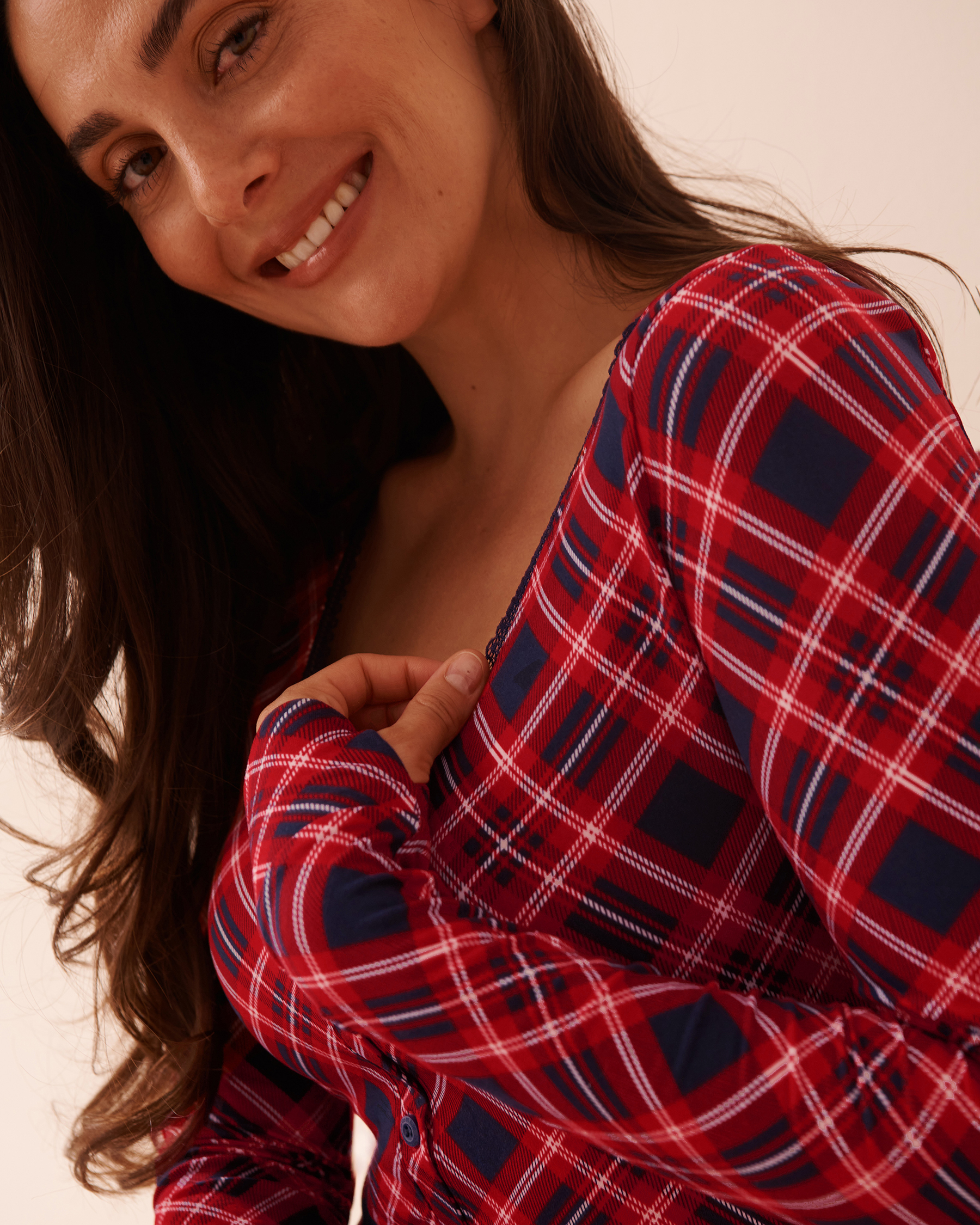Nos pyjamas en tissu peau de pêche se réinventent avec des coupes ajustées qui épousent vos formes tout en subtilité. Profitez du confort intense de ce combishort disponible dans un imprimé à carreaux au look vintage.
