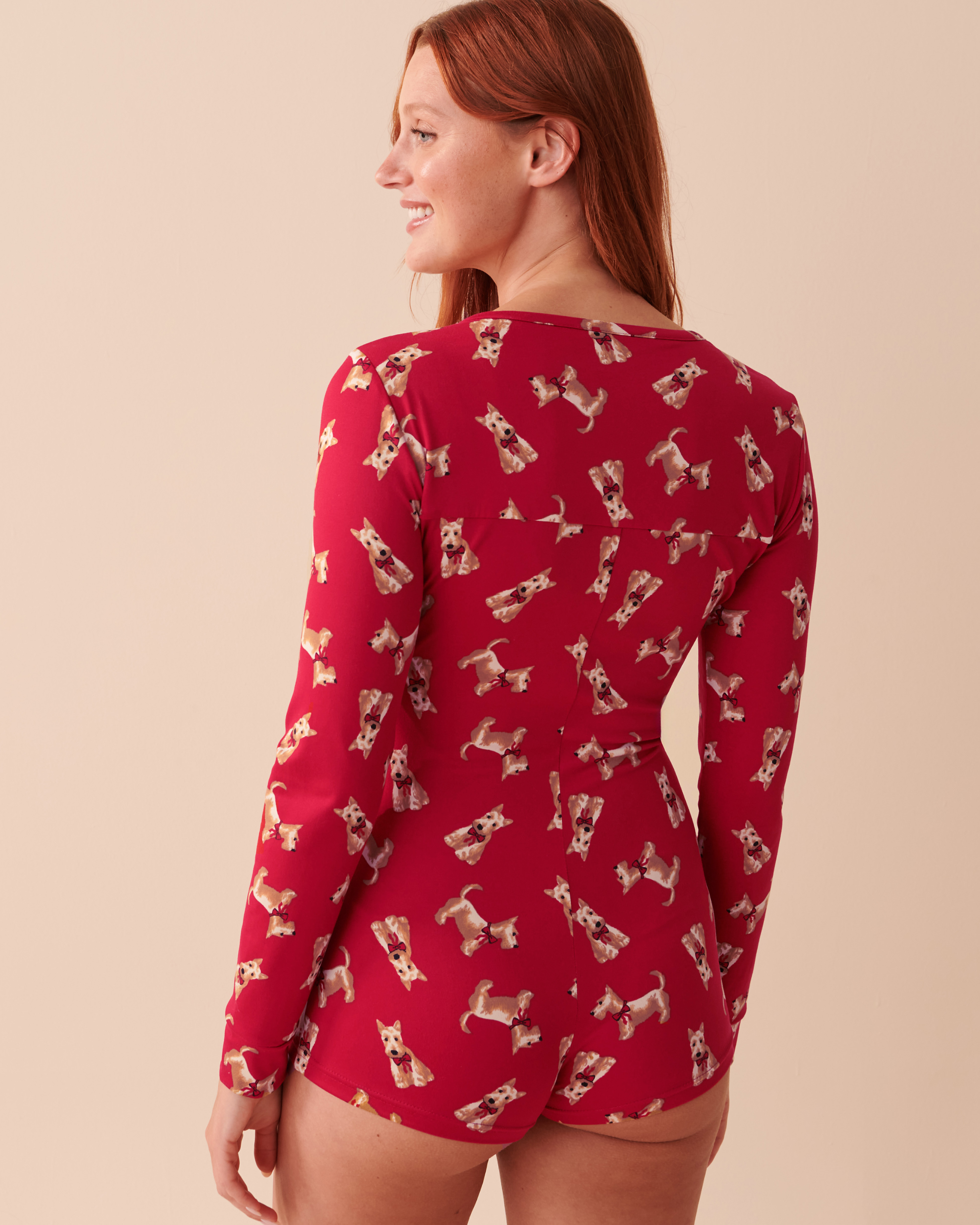 Ajoutez une touche de joie supplémentaire à vos fêtes de fin d'année avec ce combishort à motif chien scottie et profitez d'un confort digne d'un nuage! Tout comme nos amis à quatre pattes, laissez ce combishort devenir un élément précieux de vos moments festifs.