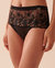 Culotte bikini taille haute en résille à fleurs appliquées