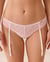Une culotte brésilienne qui sublime vos courbes au quotidien ou lors d'occasions un peu plus spéciales. Elle explore les contrastes, entre une résille qui laisse deviner la peau et le relief presque poétique des broderies florales. Le regard suit la courbe des hanches jusqu'aux jarretelles, que vous ajustez ou retirez au gré de vos envies.
