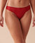 Tombez sous le charme de cette culotte tanga ornée d’une dentelle délicate et d'une couleur rouge éclatante. Sa transparence subtile saura flatter votre silhouette et ce, avec confort!