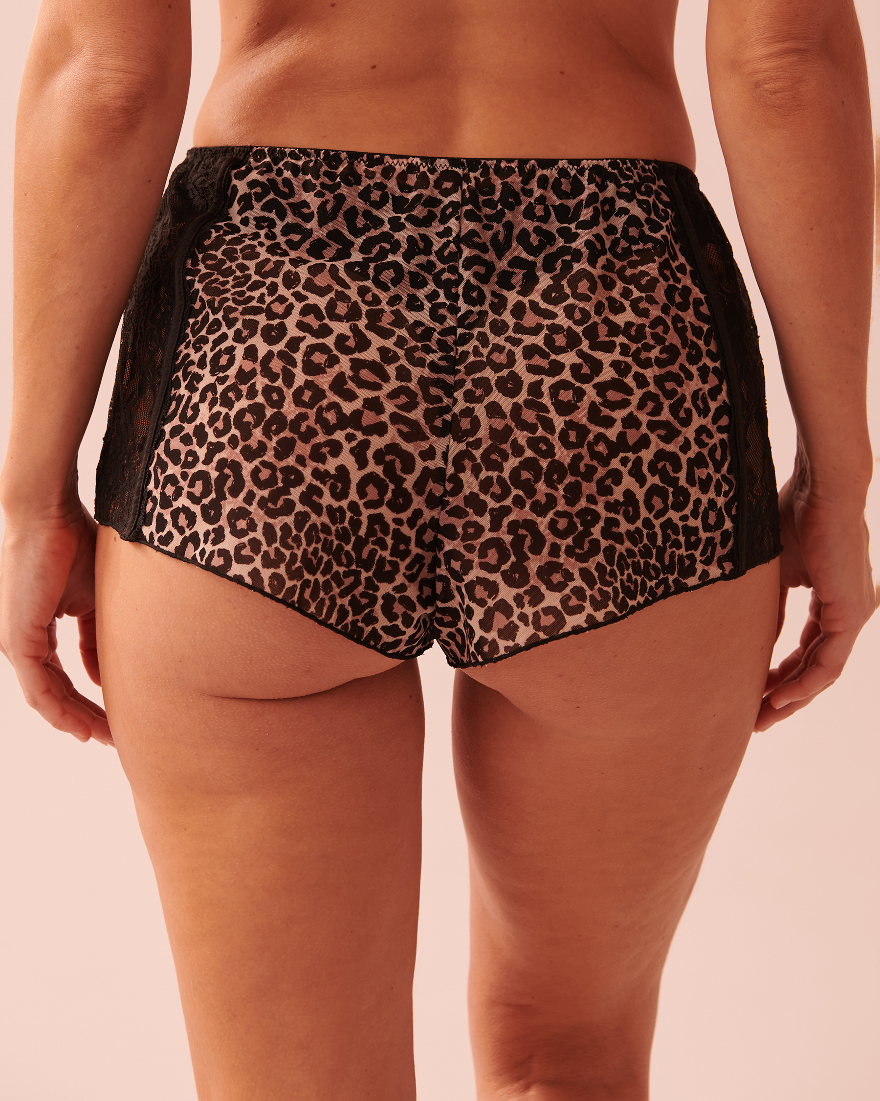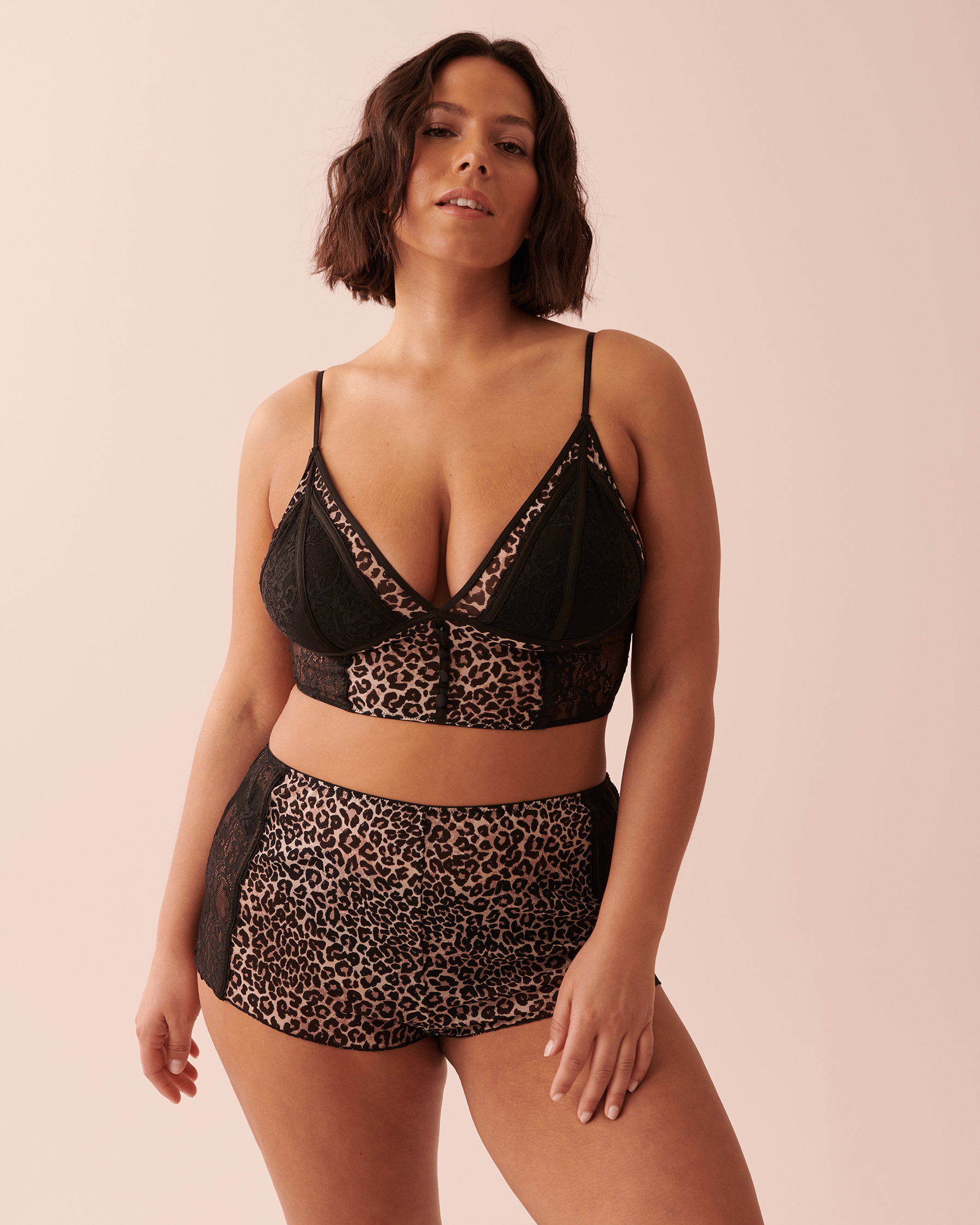 Ensemble de 2 pièces en dentelle et résille imprimé léopard