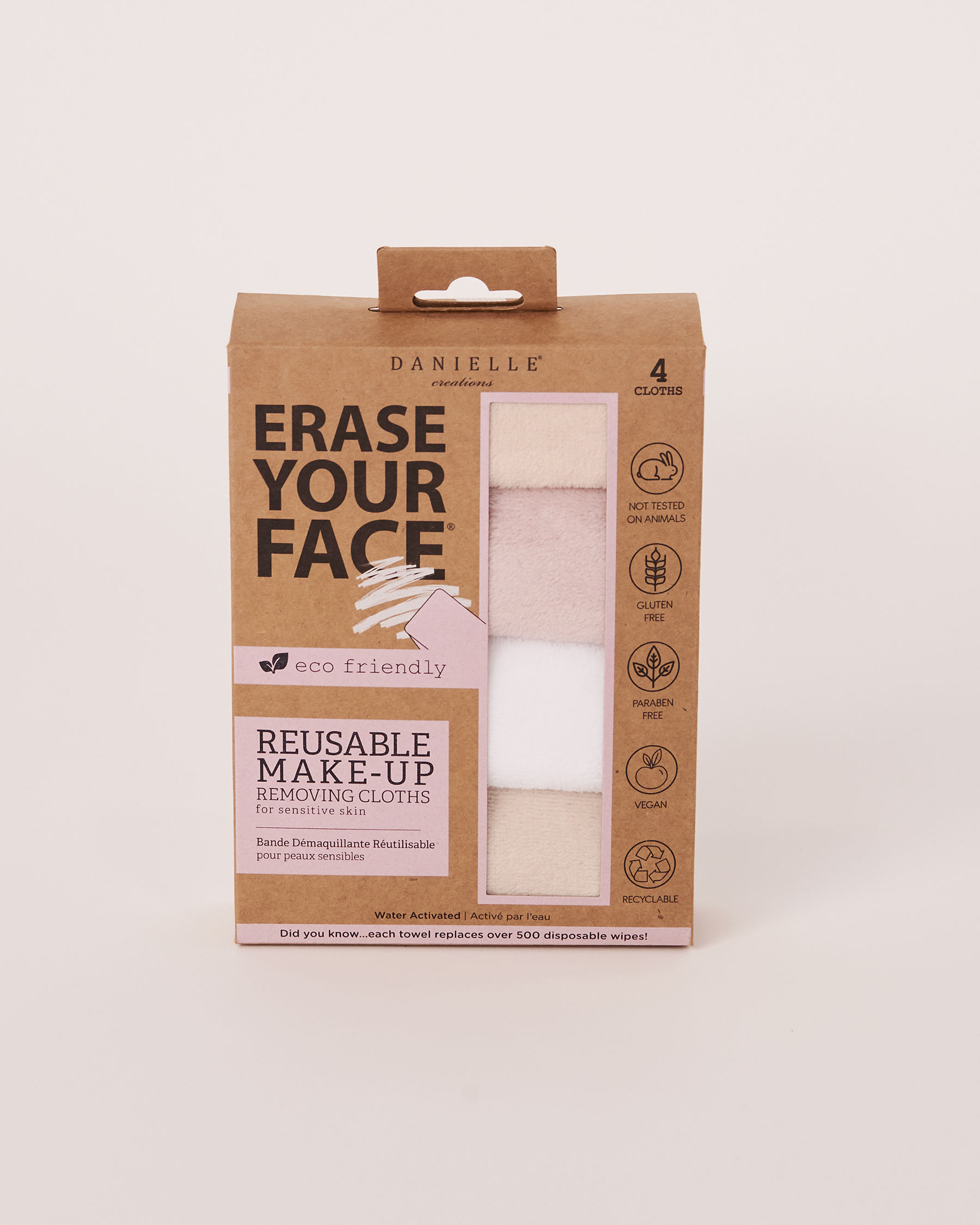 Une lingette enlevant tous les types de maquillages, incluant le mascara hydrofuge sans que vous ayez à utiliser des produits chimiques dommageables ni des démaquillants synthétiques.