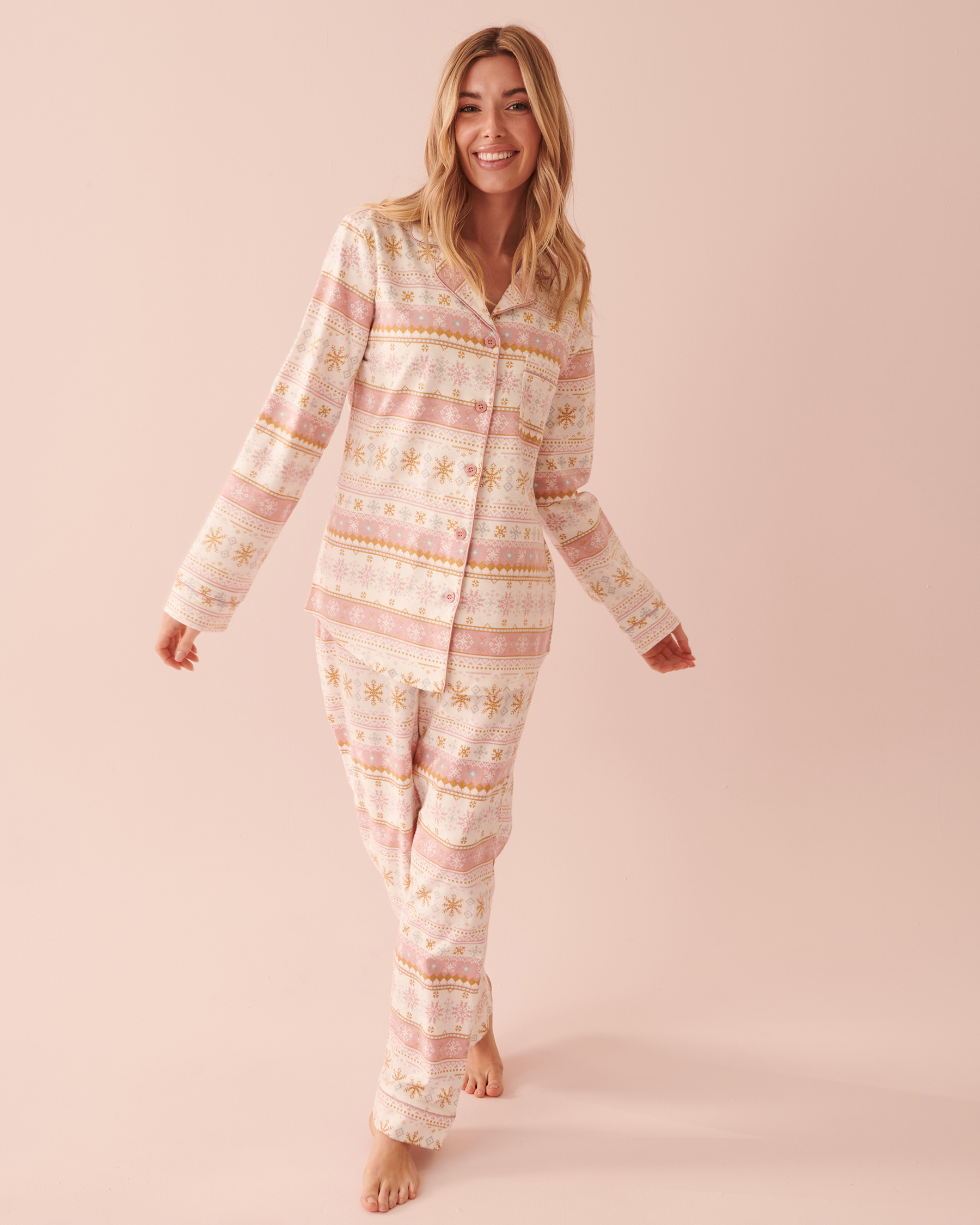 Offrez-vous ou à vos proches un plaisir festif avec nos charmants ensembles de pyjamas en flanelle! Prêts à être offerts, ces pyjamas sont parfaits pour se détendre près du feu ou pour partager des moments de joie lors des matinées magiques des fêtes. Profitez de la saison en tout confort!