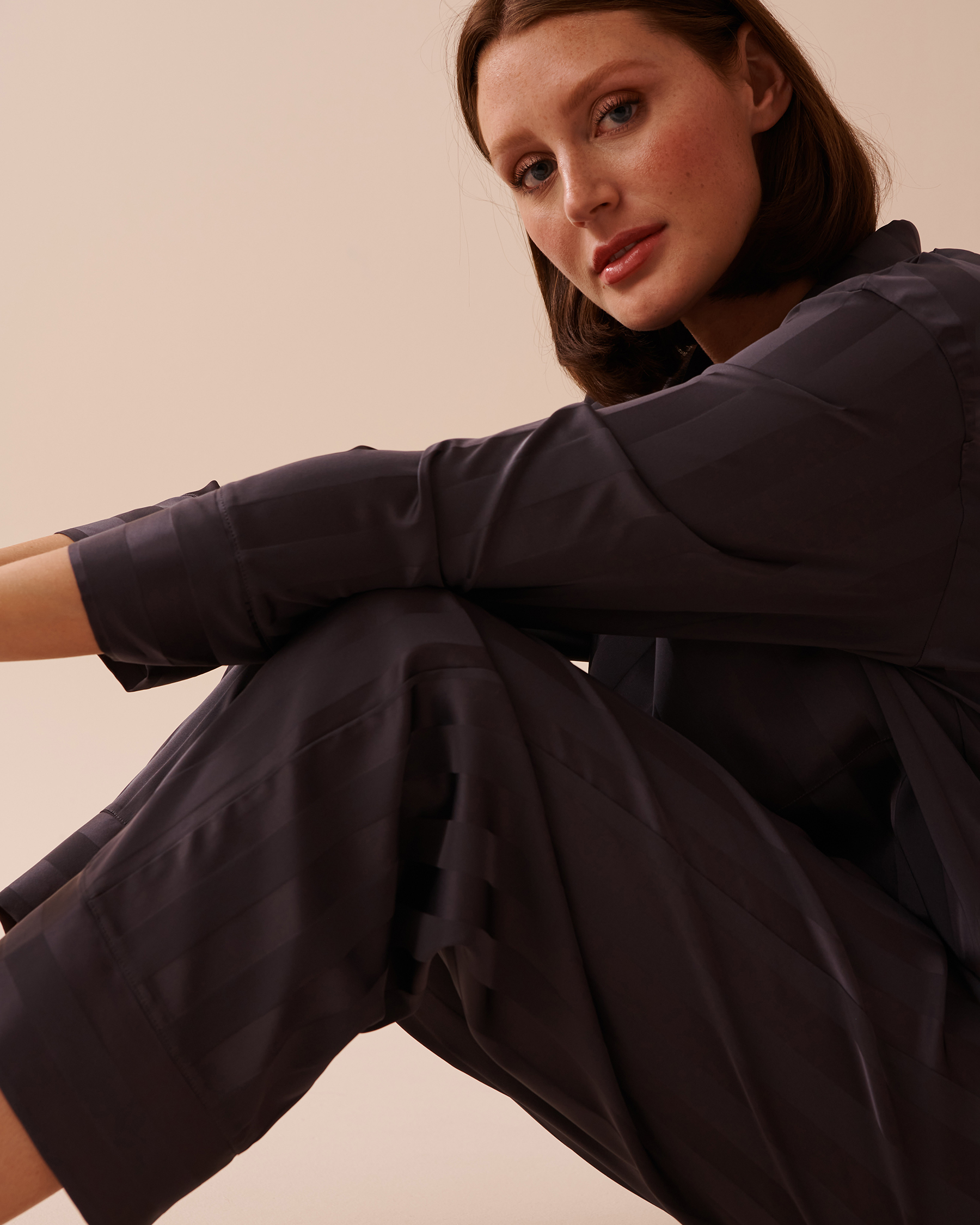 Ensemble pyjama en satin jacquard à rayures