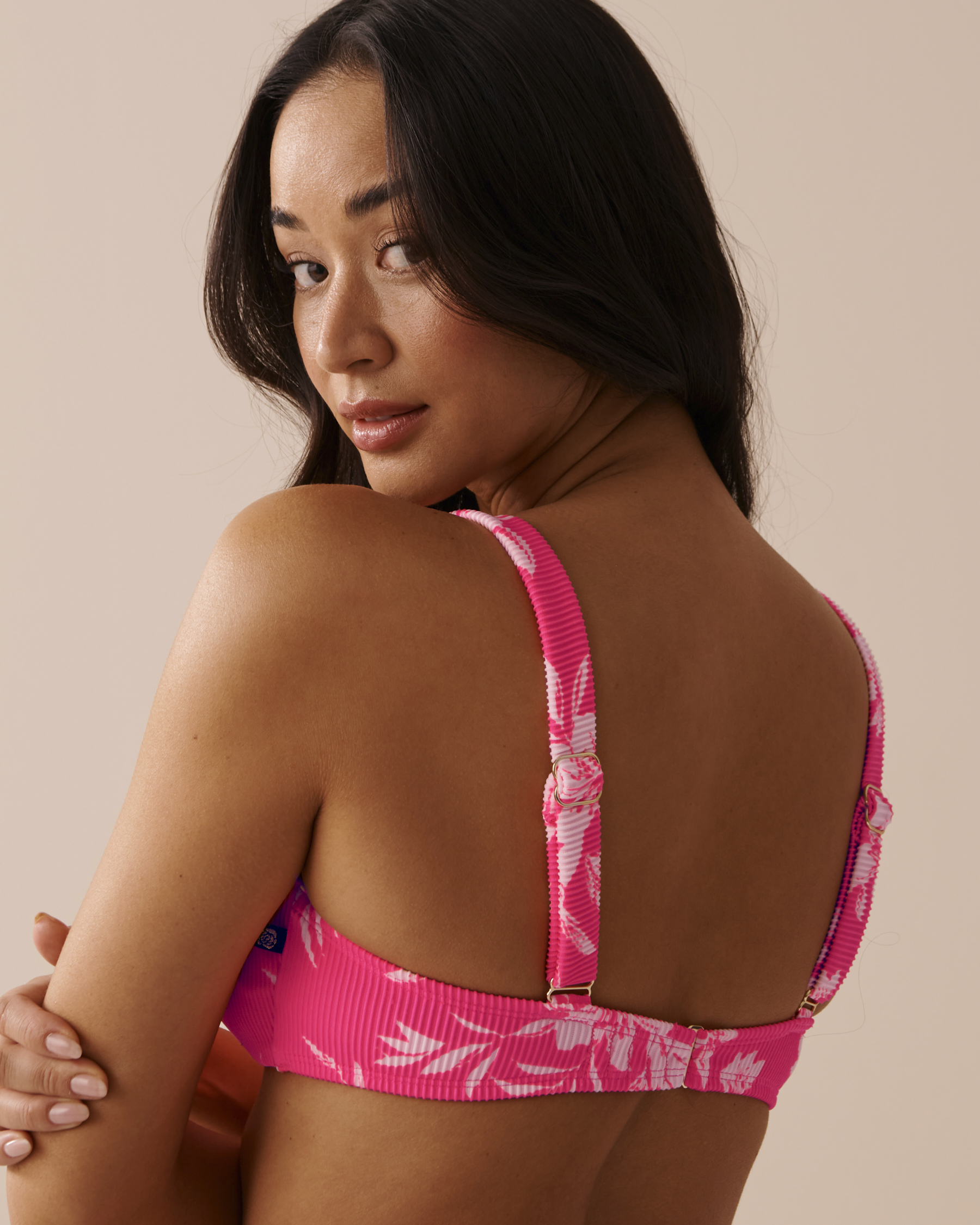 Haut de bikini bralette armature en V texturé ROSE TROPICAL