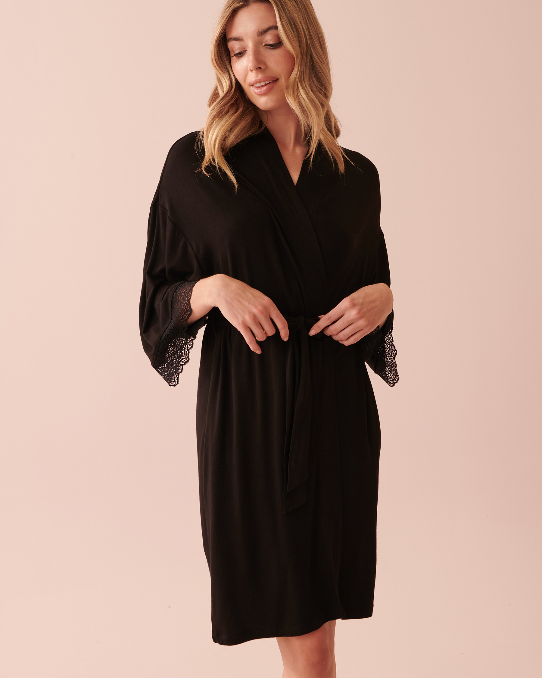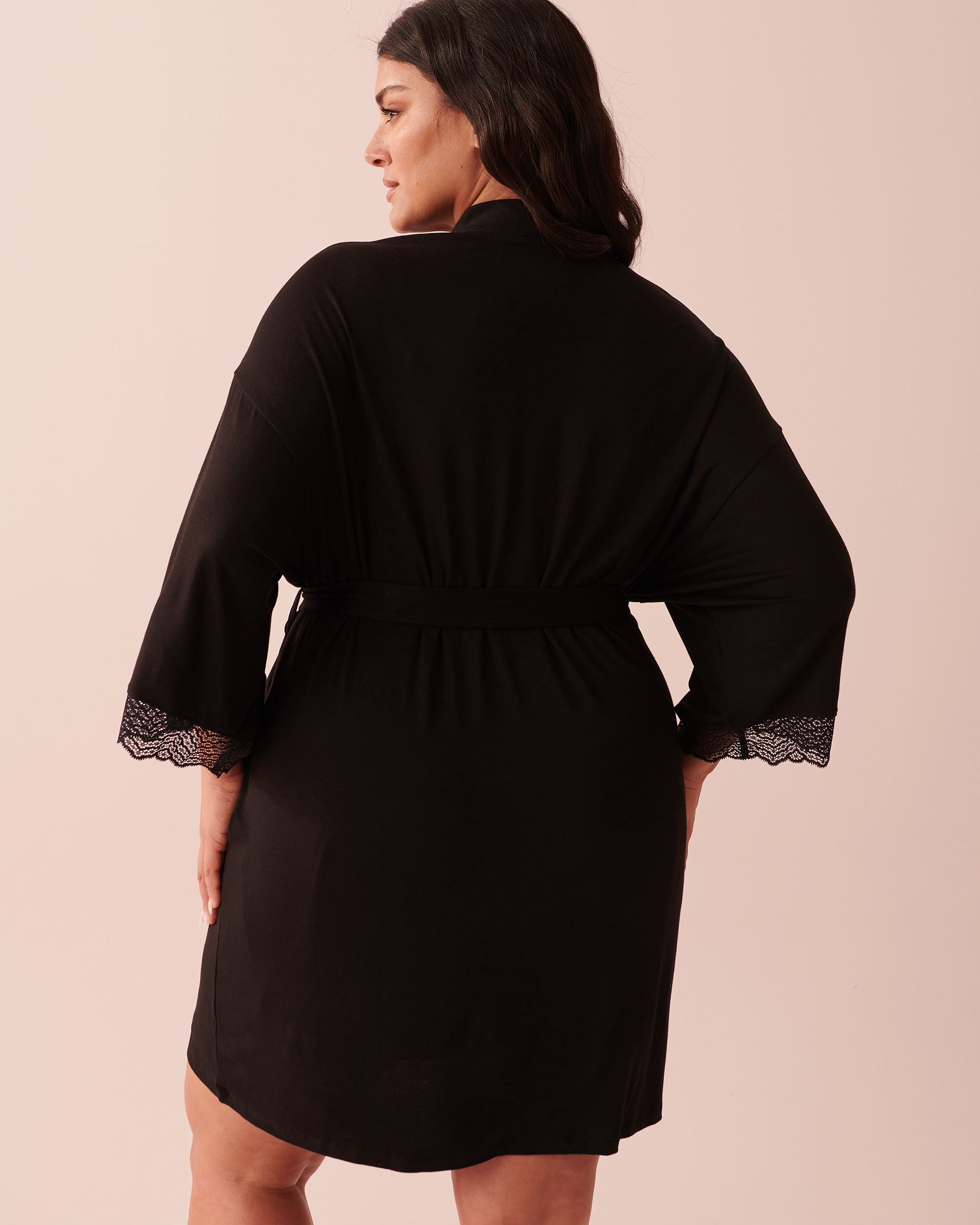 Kimono bordure de dentelle en jersey doux