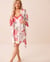 Kimono en satin bordure de dentelle imprimé camélia
