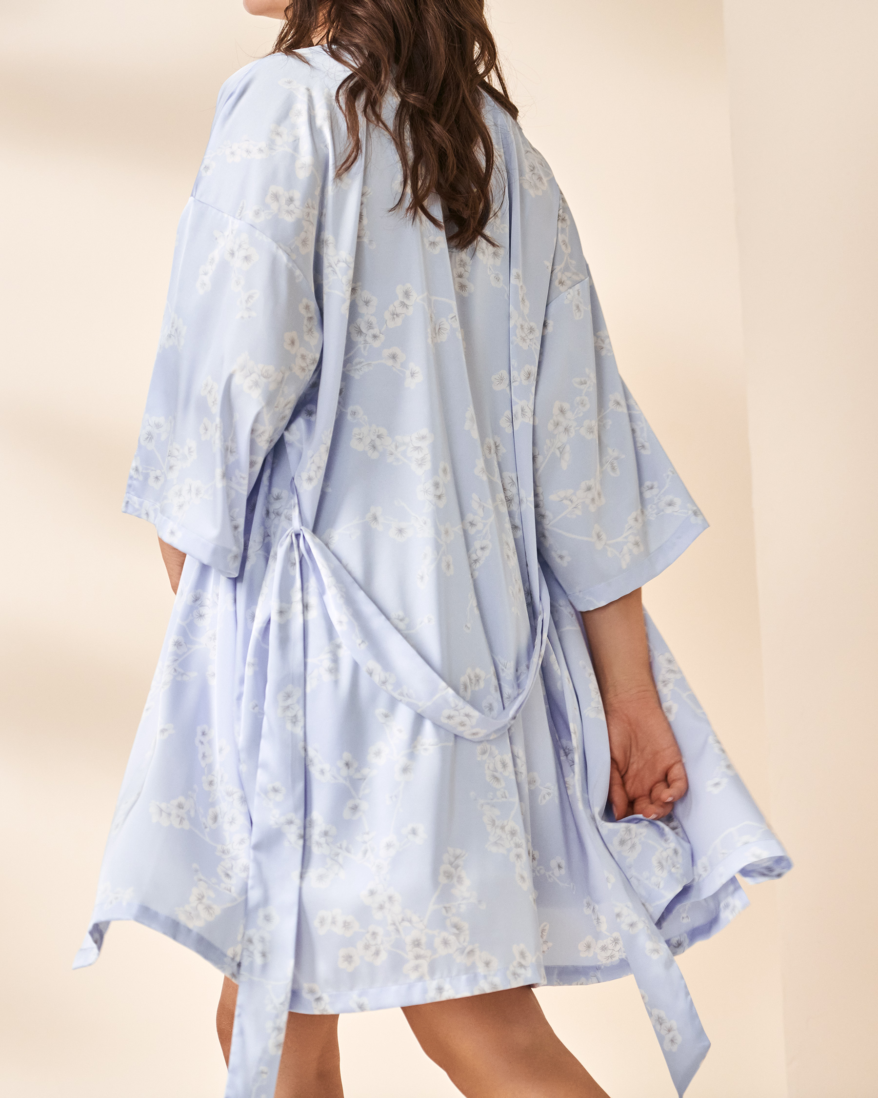 Rehaussez votre tenue de détente avec ce luxueux kimono en satin! Confectionné dans une matière délicatement soyeuse, il procure une sensation somptueuse sur la peau. Laissez-vous séduire par la beauté poétique des fleurs de cerisier!