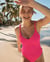 Maillot une-pièce texturé à dos croisé ROSE ÉLECTRIQUE