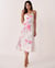 Jardin blanc! Nuisette en satin mi-longue avec bretelles minces ajustables et imprimé floral délicat.