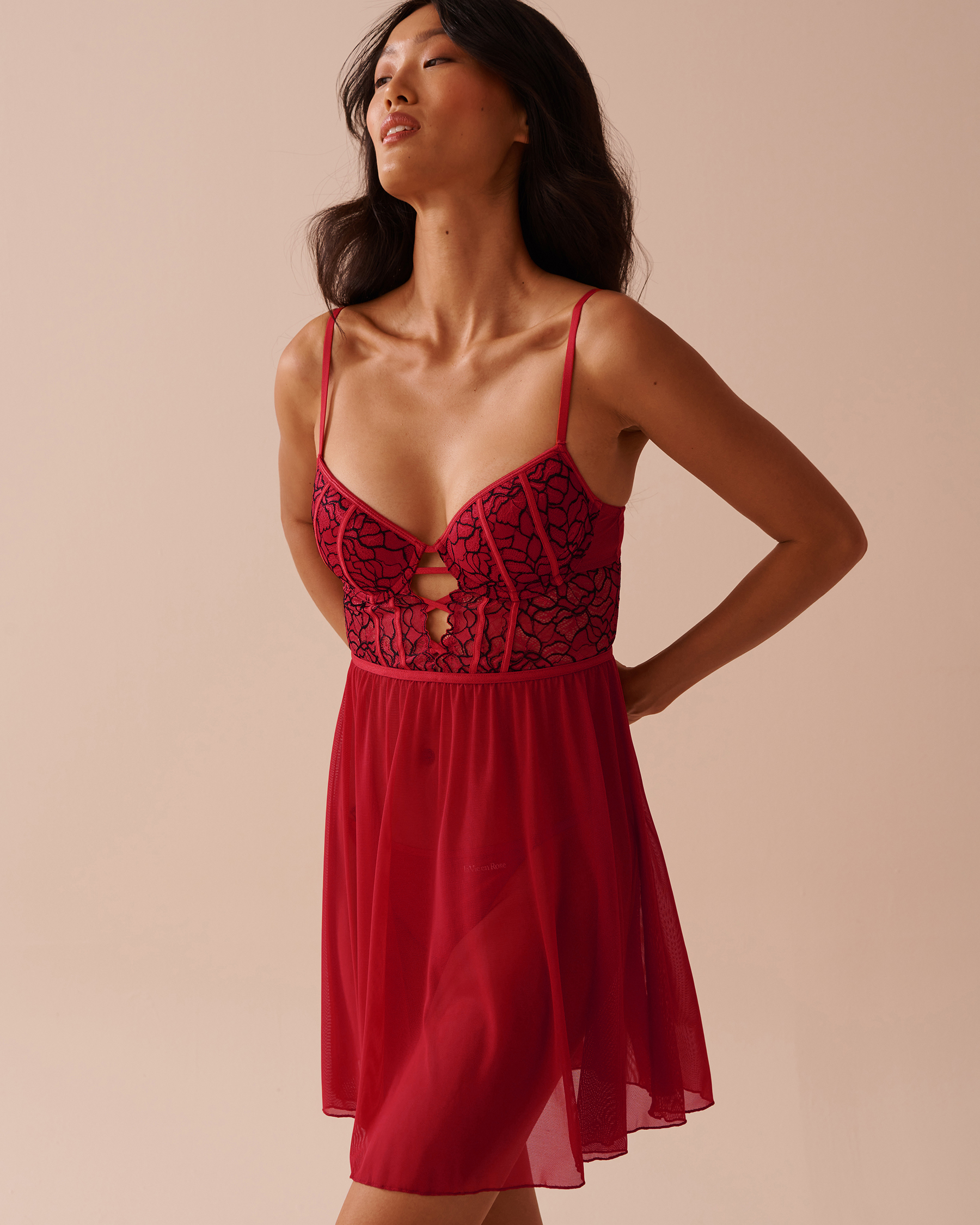 Une dentelle avec un joli effet de contraste, un décolleté plongeant très flatteur, de la résille transparente... Avec cette nuisette, nous mettons notre expertise en lingerie fine au service de votre silhouette. Elle est dotée de coussinets push-up amovibles, de bretelles et d'une fermeture arrière ajustables pour s'adapter à vos besoins et à vos envies.