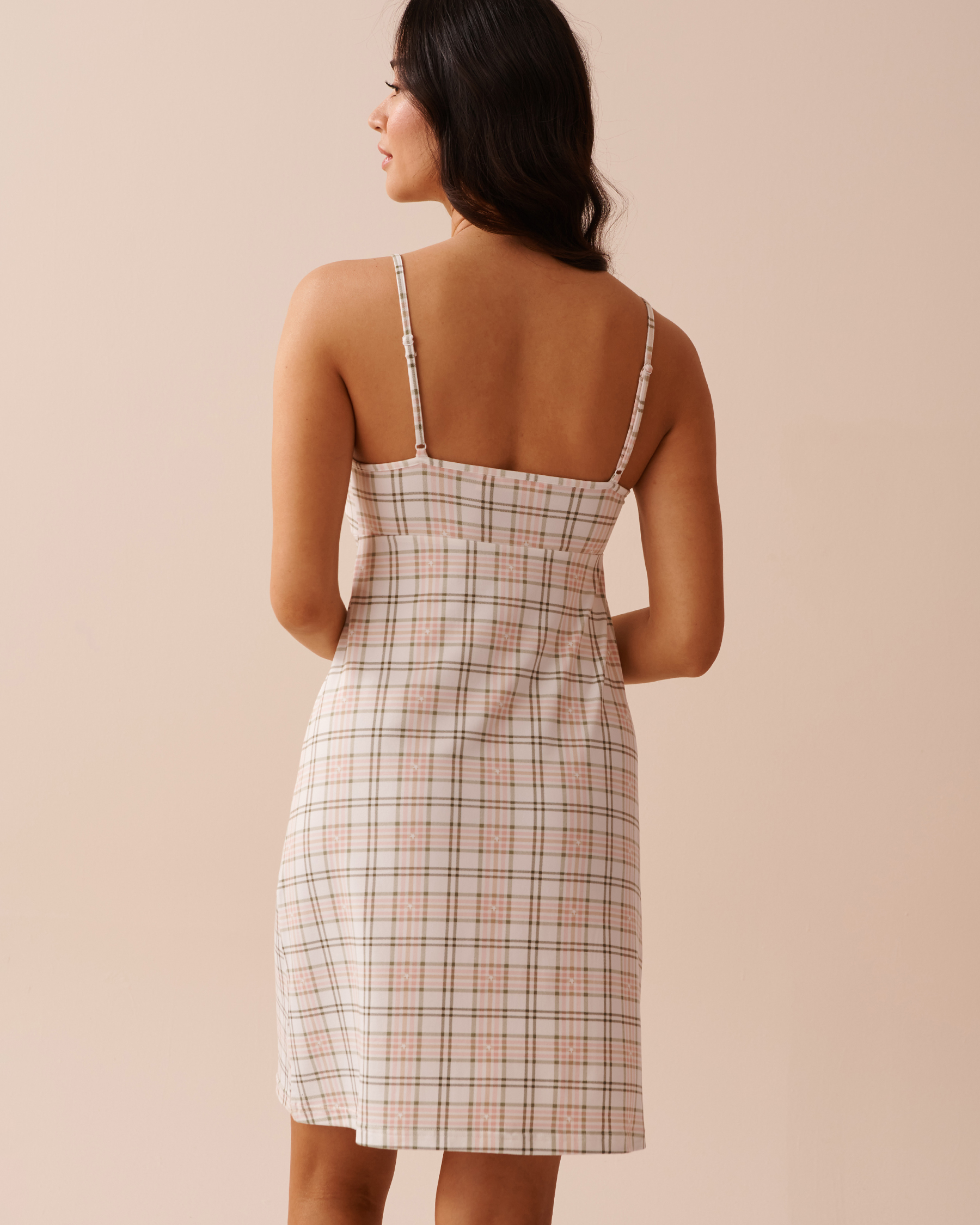 Elle est si douce que vous ne voudrez plus la quitter! Un confort infini et un délicat imprimé à carreaux, tout dans cette nuisette invite à la détente.