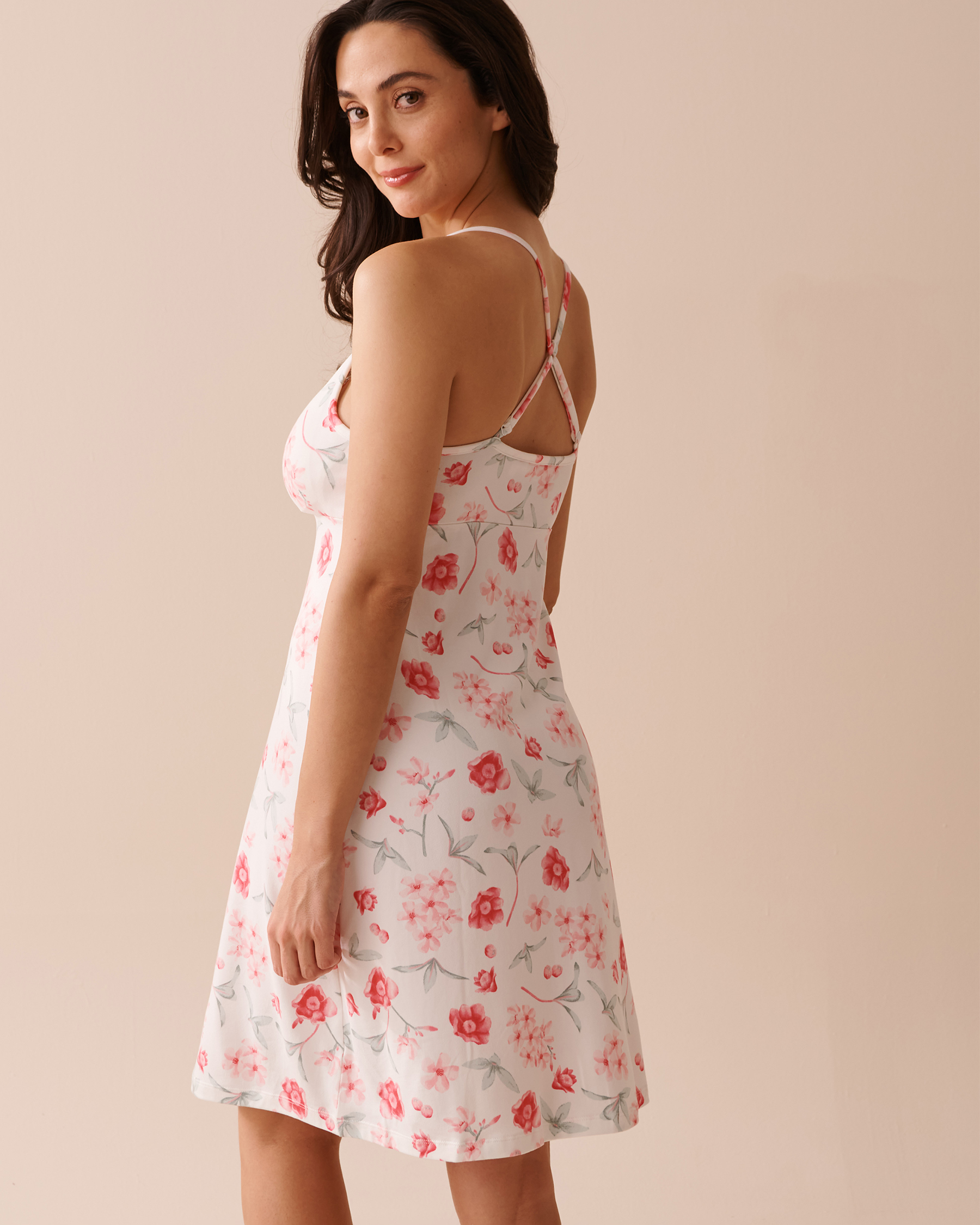 Elle est si douce que vous ne voudrez plus la quitter! Un confort infini et une mosaïque florale rafraîchissante, tout dans cette nuisette invite à la détente.