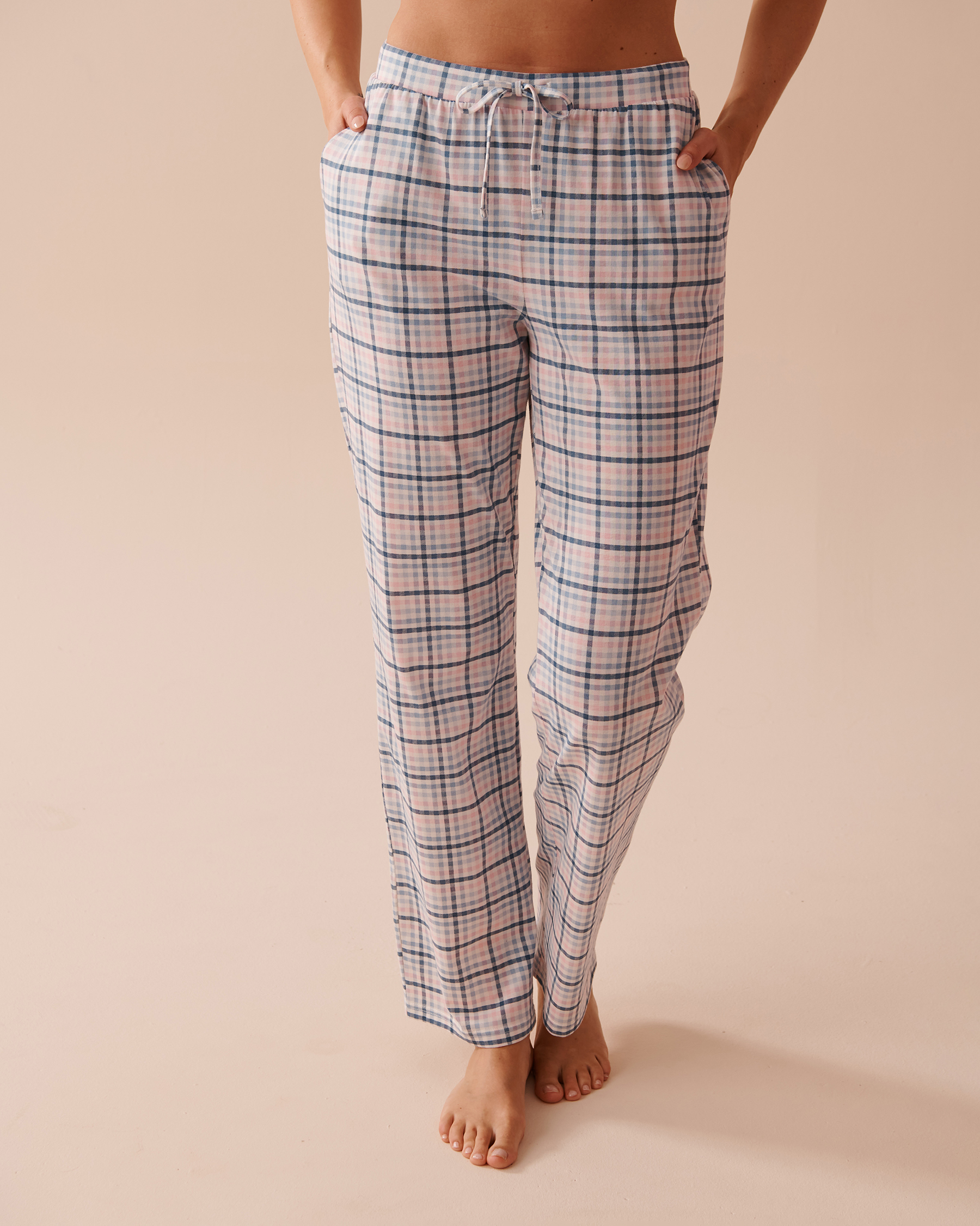 Pantalon de pyjama en coton à carreaux bleus