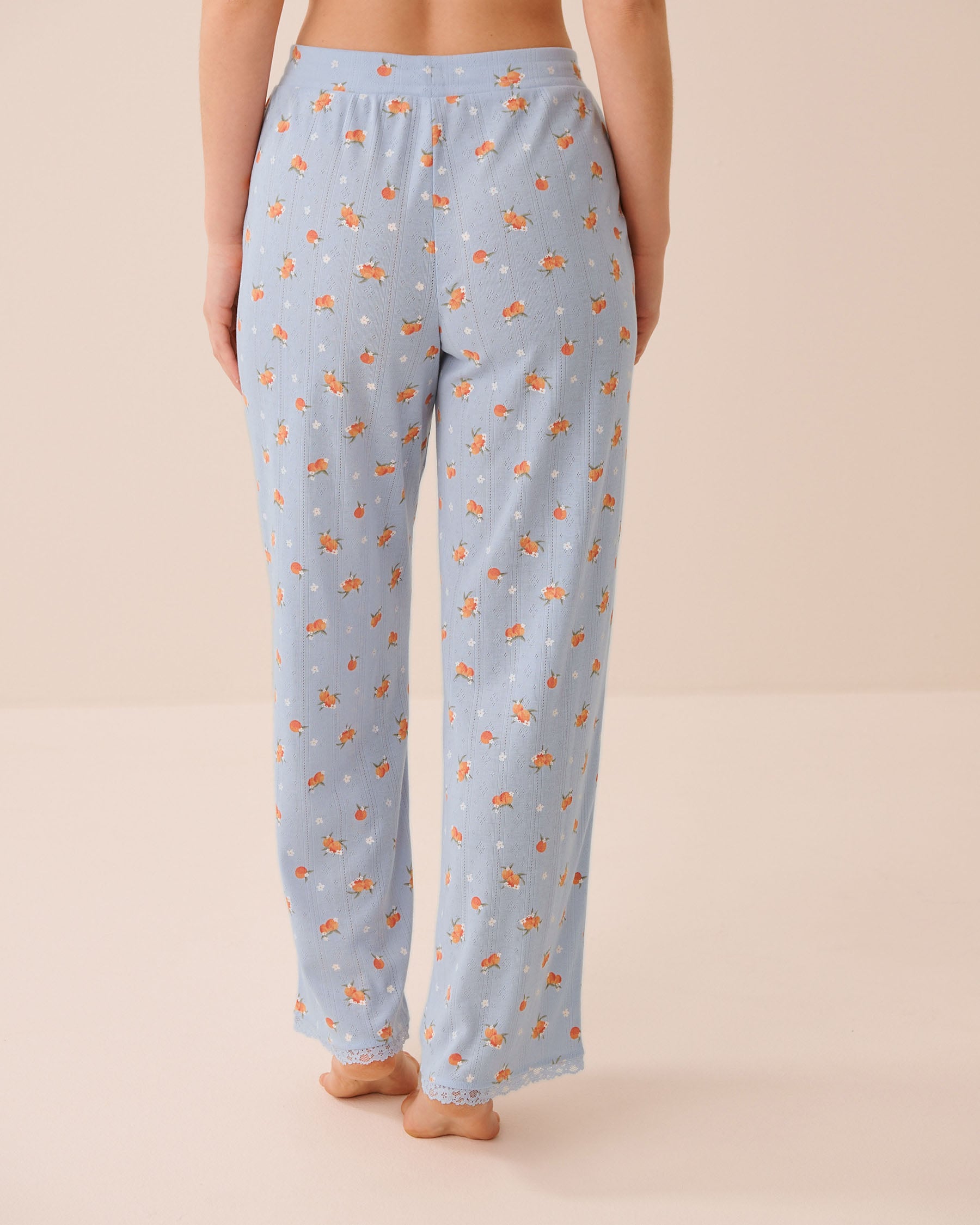Pantalon de pyjama en pointelle bordure de dentelle imprimé pêche