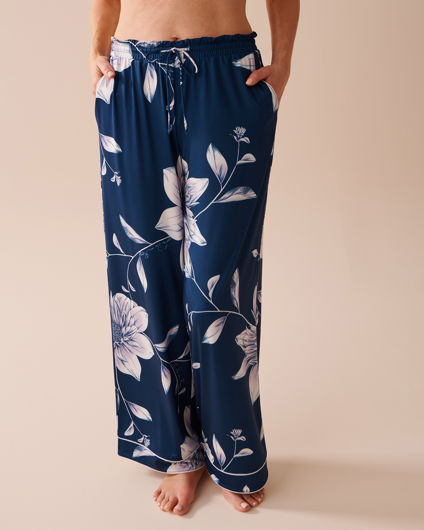 Passez à l'élégance pure avec notre pantalon orné de dahlias en fleurs! Son allure gracieuse rehausse naturellement n'importe quel ensemble.