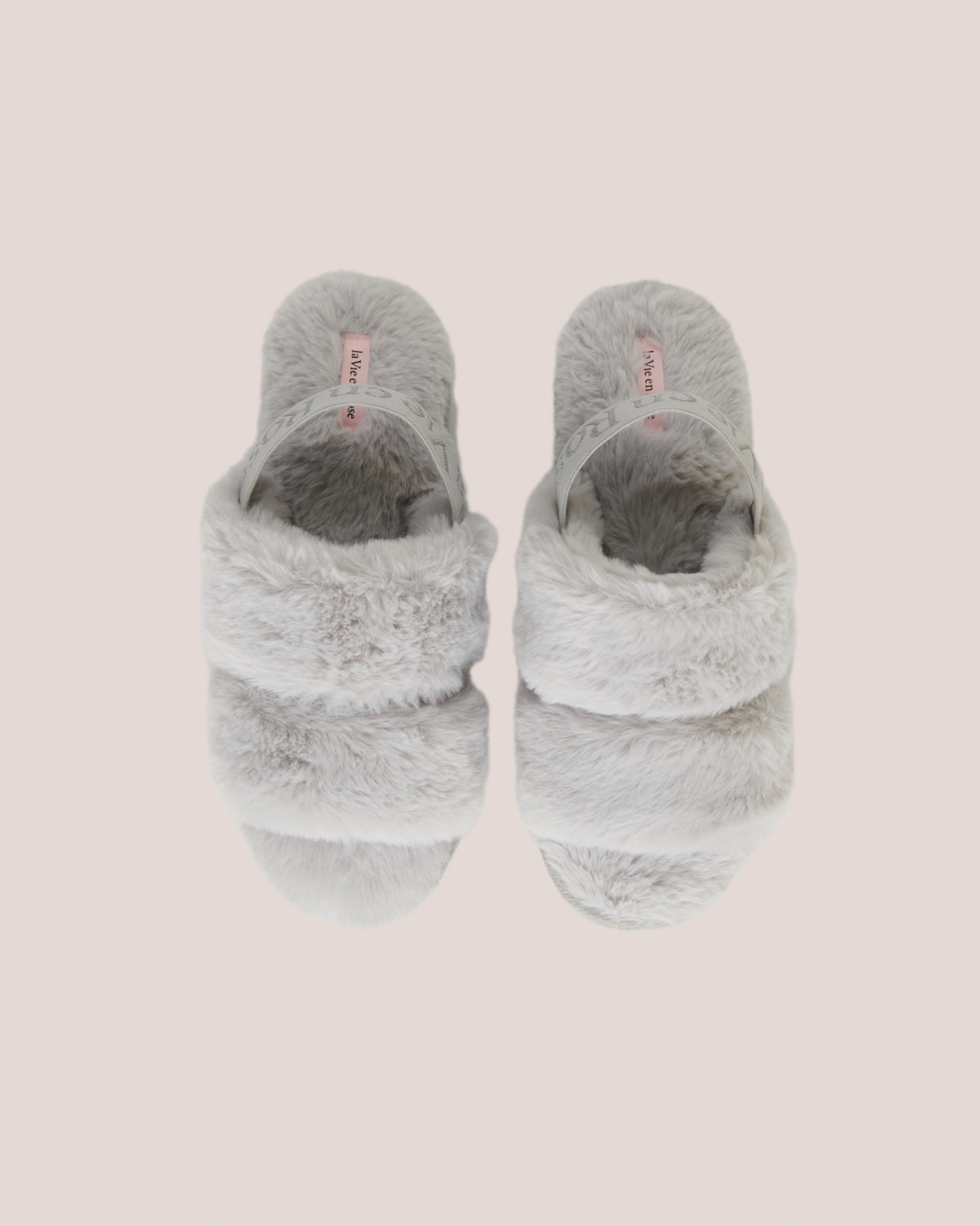 Pantoufles mules ouvertes en peluche douce avec élastique au talon et logo la Vie en Rose.
