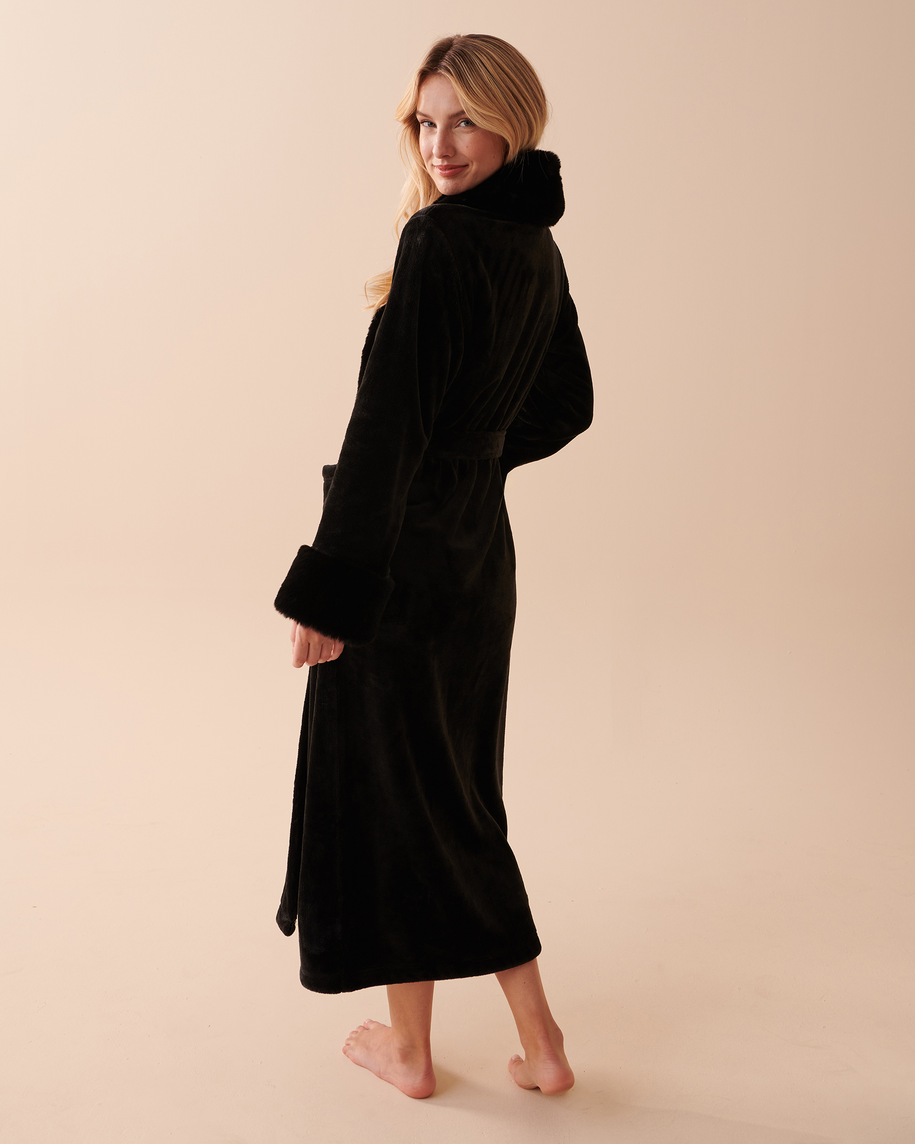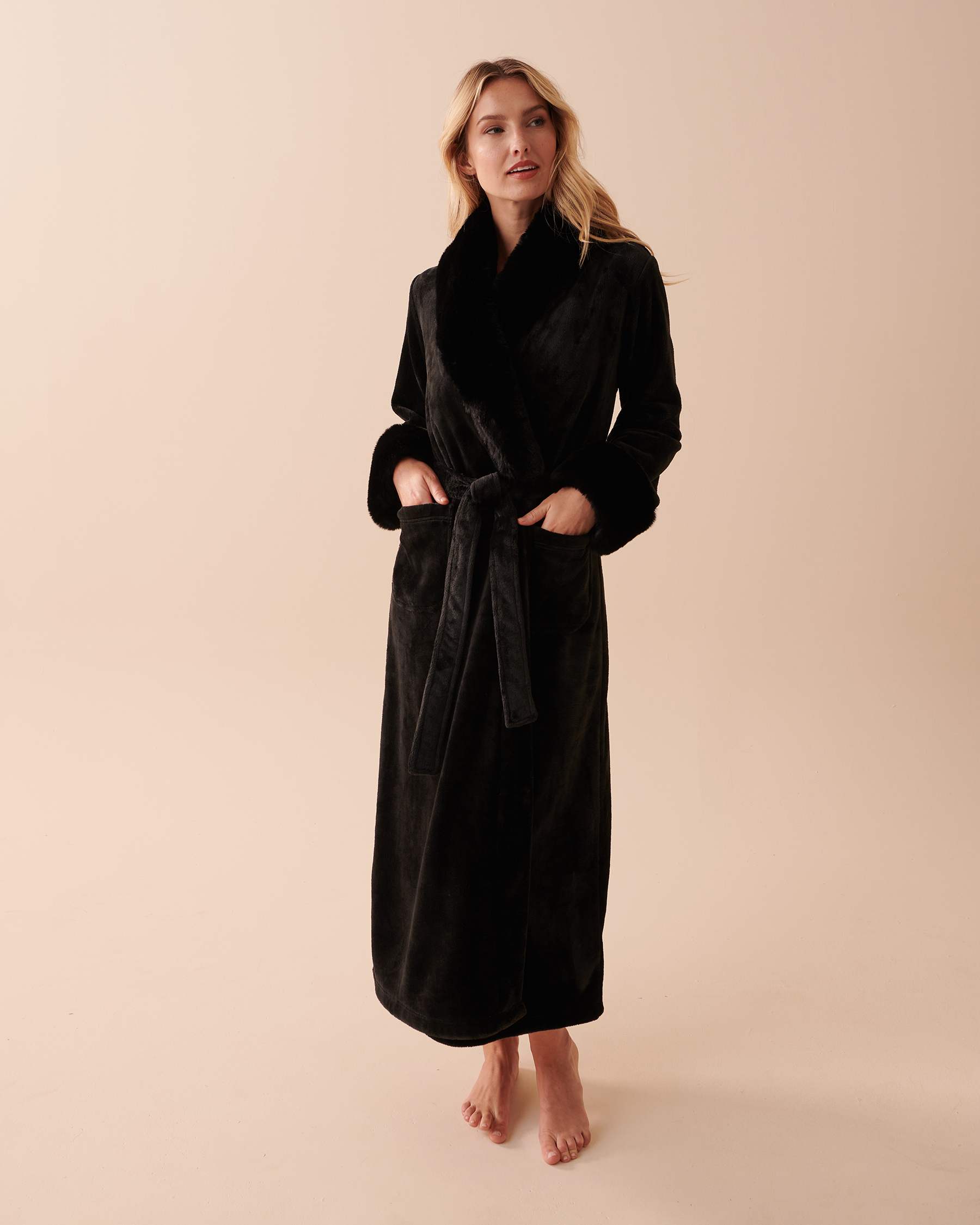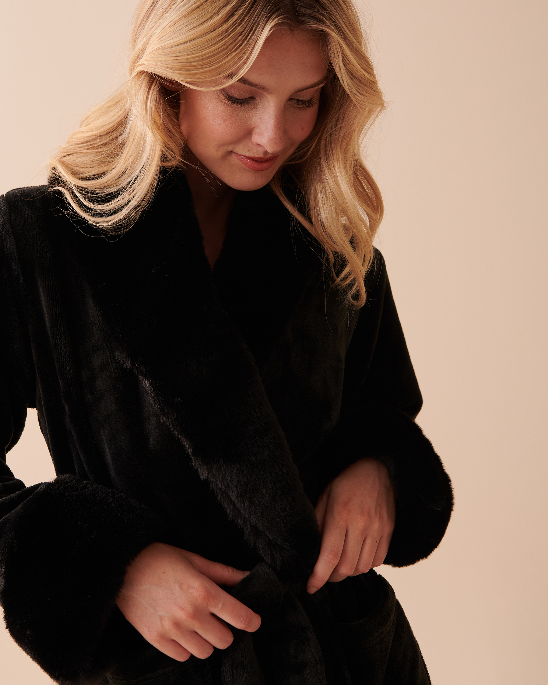 Profitez d'un confort aussi doux que luxueux grâce à notre robe de chambre longue en peluche agrémentée de fausse fourrure. Se prélasser ne sera jamais aussi chic et élégant!