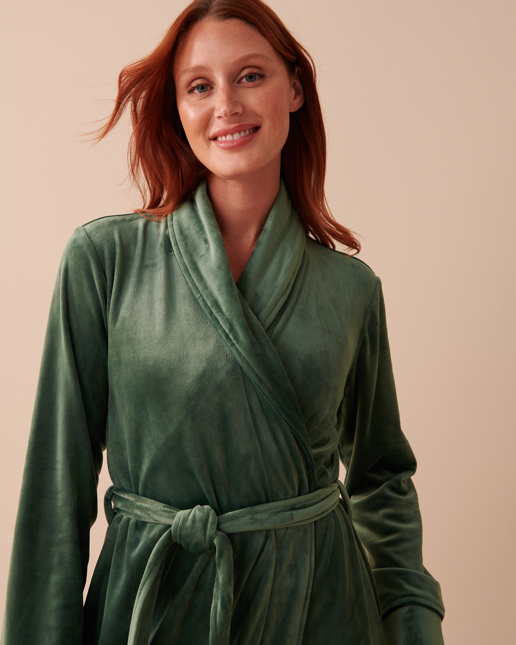 Laissez-vous séduire par cette robe de chambre veloutée et laissez sa beauté et son confort vous transporter dans un royaume de tranquillité. Le tissu doux offrira un toucher somptueux contre votre peau.