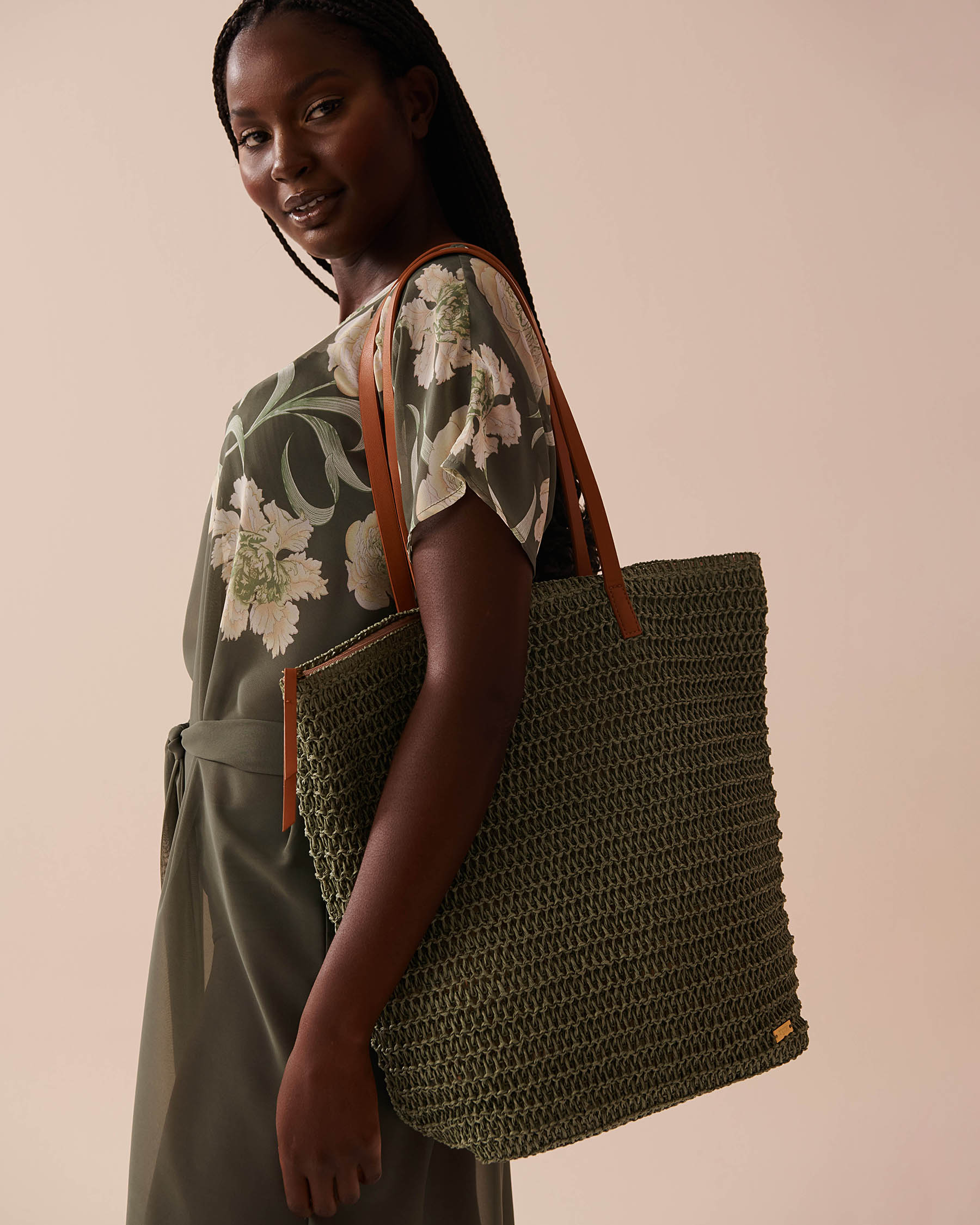 Transportez tous vos essentiels de plage avec style! Ce grand sac en paille verte est l'accessoire parfait : mettez-y votre serviette, votre écran solaire et un bon livre, il peut tout contenir.