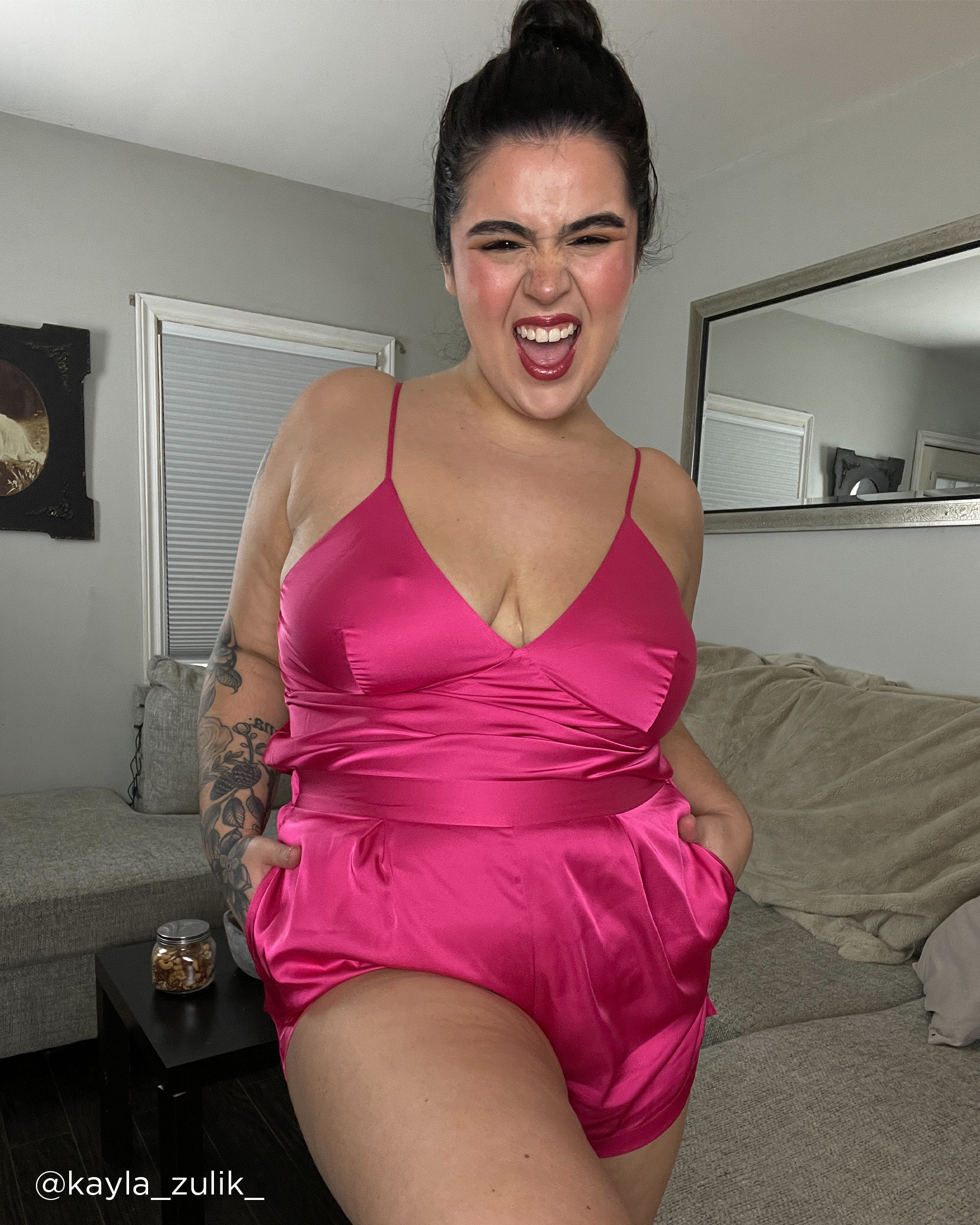 Fuchsia en folie! Short en satin avec poches sur les côtés.
