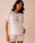 Notre tissu peau de pêche se pare d'un imprimé lapin tendre et coloré. Avec son incroyable douceur et sa coupe fluide, ce haut de pyjama vous fera rêver durant les périodes plus ensoleillées.