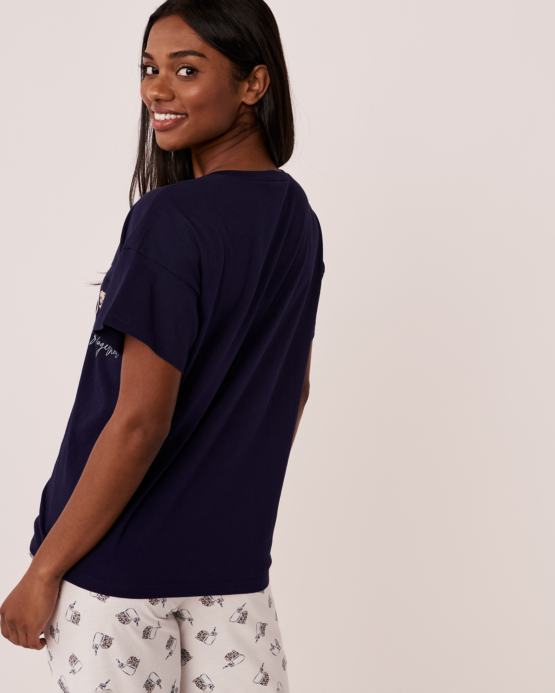 La collation parfaite! T-shirt à col rond en coton avec imprimé brillant à l'avant.