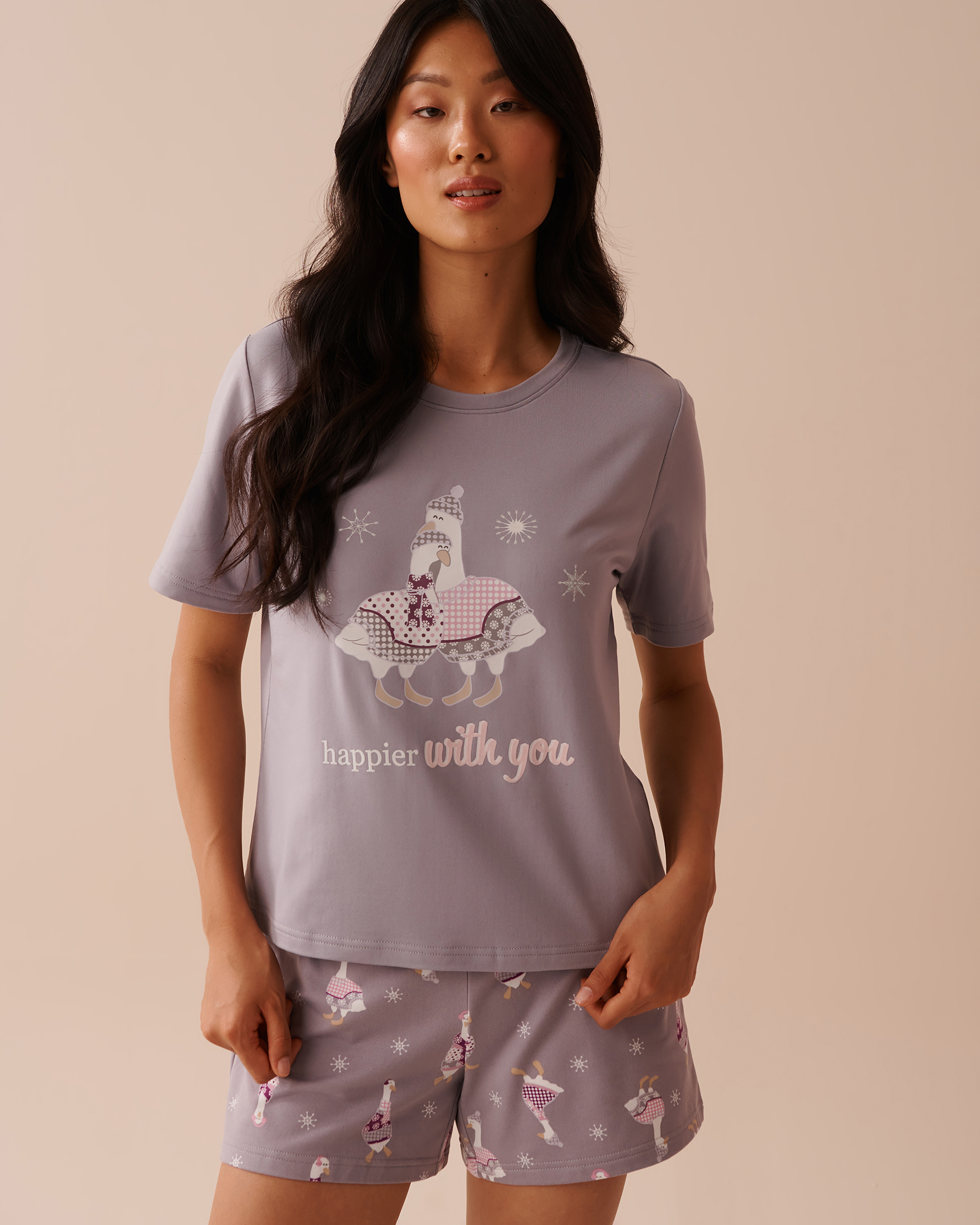 Tant de raisons d'aimer nos pyjamas douillets! Ils marient la douceur et la souplesse de notre tissu peau de pêche signature à une touche moelleuse si réconfortante. Associez ce t-shirt à nos bas assortis!