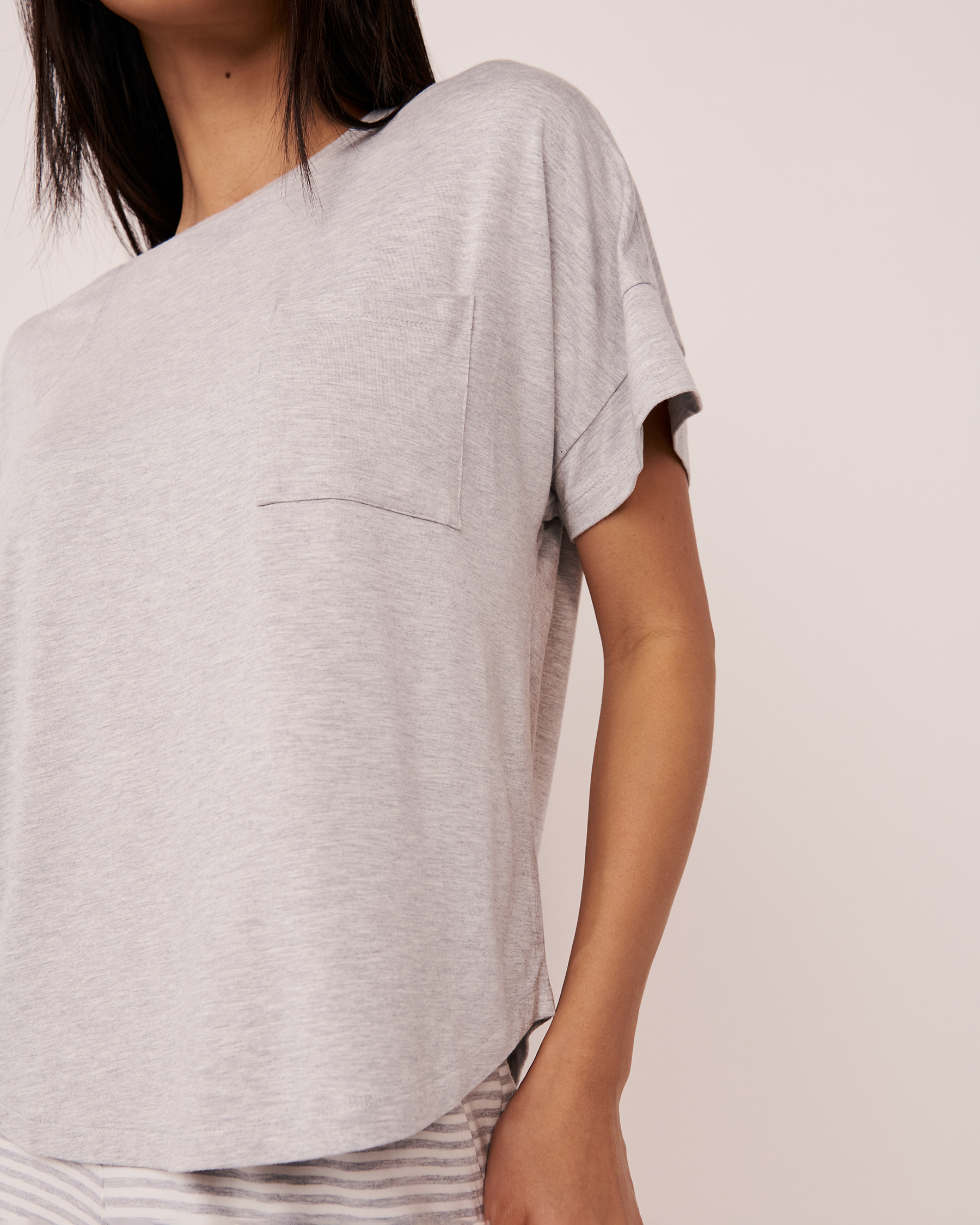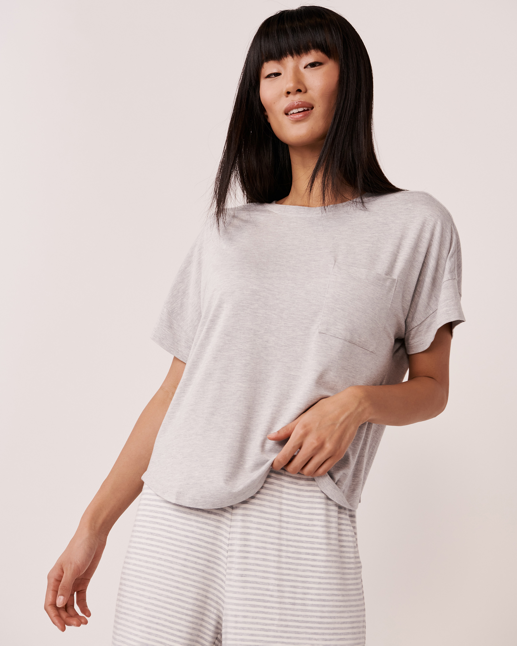 Bambou si doux! T-shirt en bambou à épaules tombantes avec poche plaquée à l'avant.