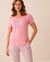 Entre petites fleurs, baies et poules, notre cœur balance… Ce t-shirt de pyjama capture l'atmosphère paisible d'un matin de printemps dans chaque imprimé. Il nous donne envie de ralentir le rythme et, pourquoi pas, de rester un peu plus longtemps au lit.