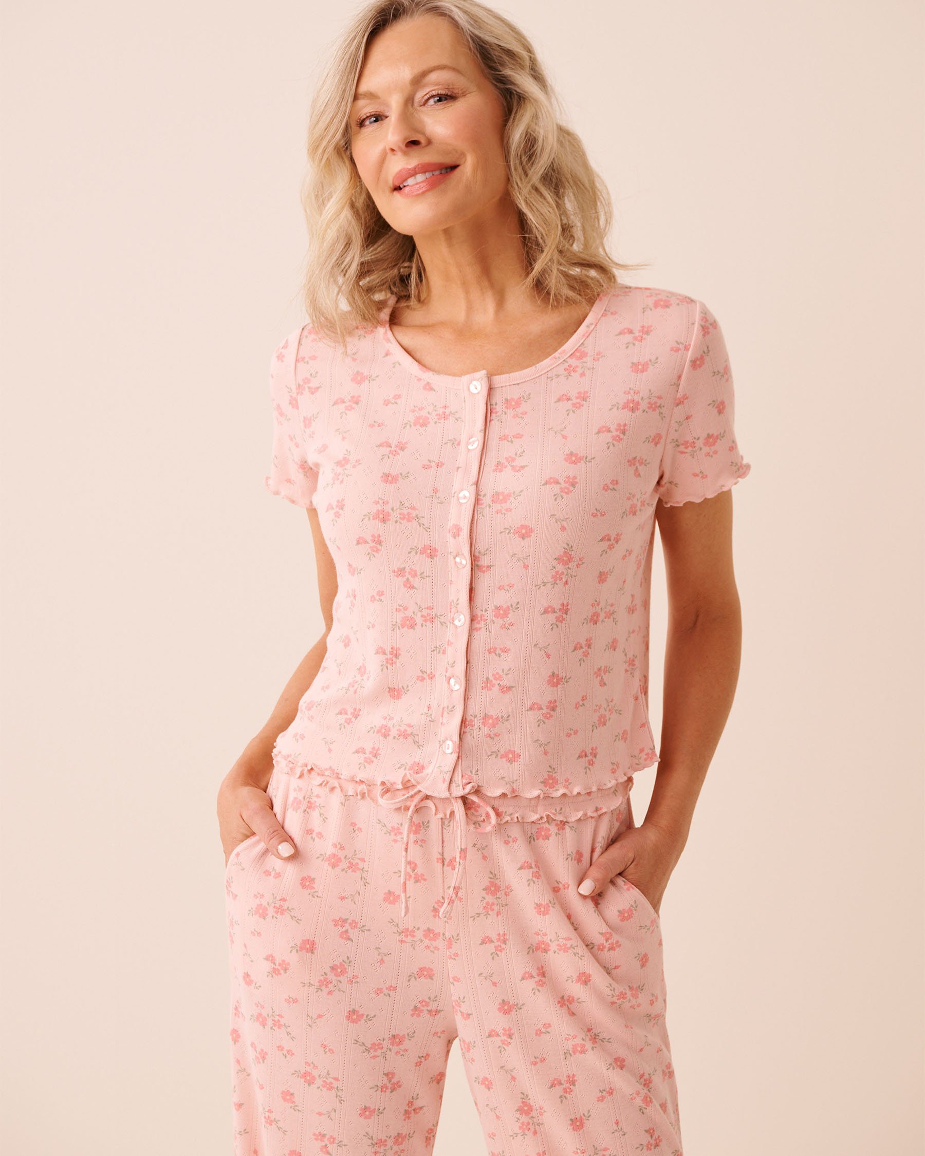 Motifs pointelle, petites fleurs, volants... Avec ce t-shirt de pyjama, chaque instant à la maison se fait un peu plus léger, un peu plus poétique.