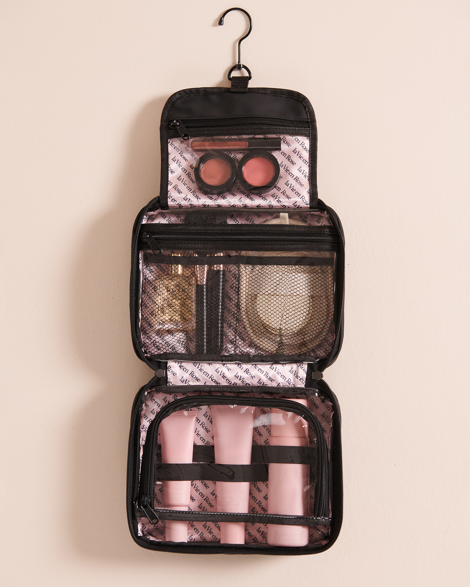 Cette trousse de voyage va révolutionner votre manière de transporter vos cosmétiques. Avec ses multiples compartiments et poches, elle vous permettra d'organiser et ranger tout votre maquillage et vos soins de beauté. En plus, elle se suspend facilement dans n'importe quelle salle de bain ou chambre d'hôtel.