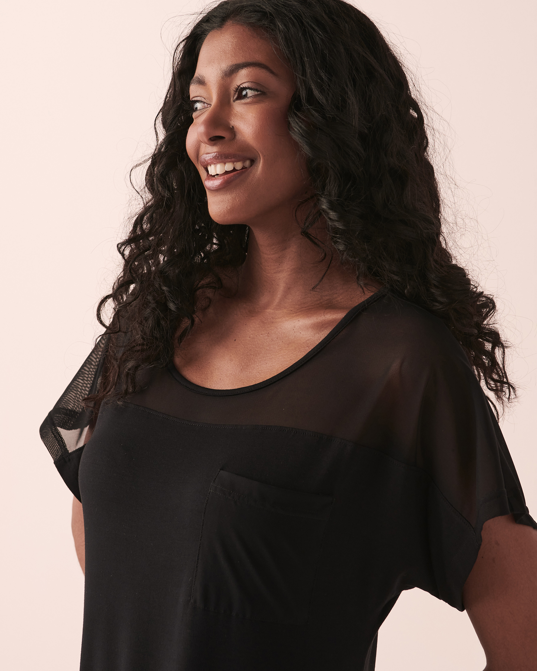 Avec sa résille transparente au col et à l'ourlet, cette tunique est une pièce de choix pour une élégance décontractée!